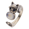复古彩宝招财猫指环纯银镶嵌天然月光石宝石戒指女个性款