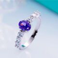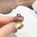 紫色925银戒指女款2025新款小众设计时尚简约六爪开口戒可调节