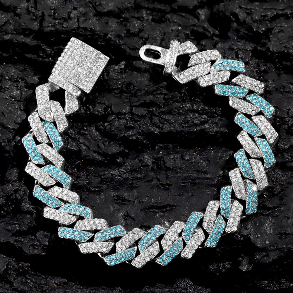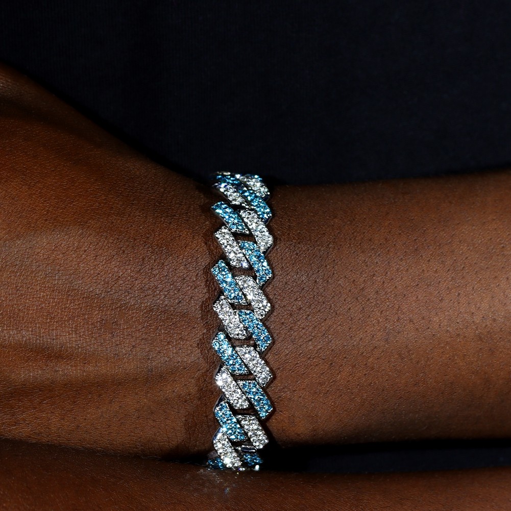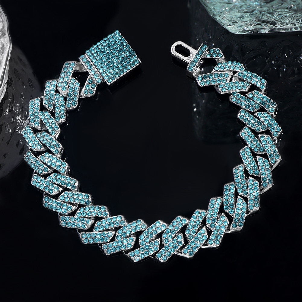 Fashion Pink Blue Iced Out Crystal Prong Cuban Link Chain