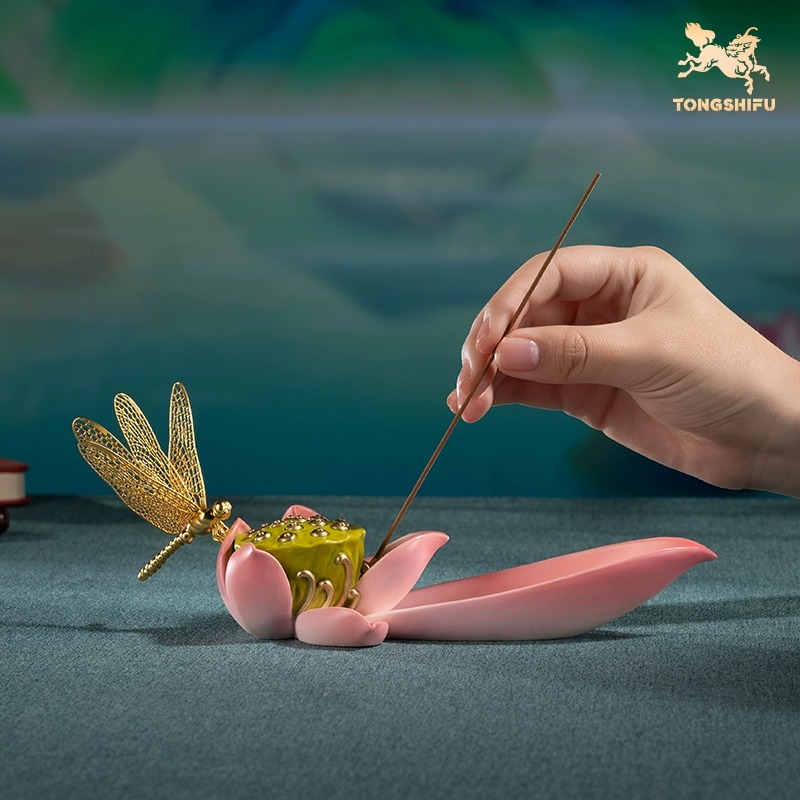 铜师傅《荷趣香插》客厅桌面铜摆件 家居装饰工艺品