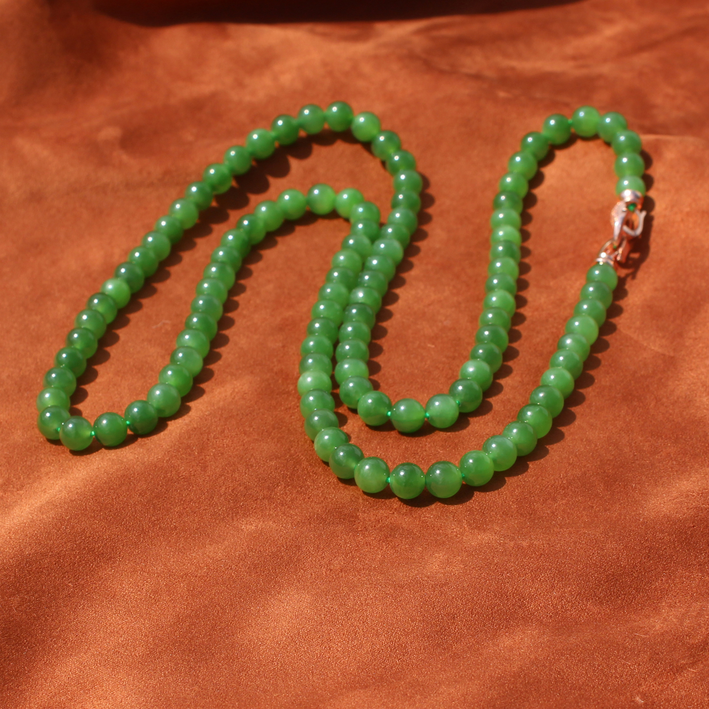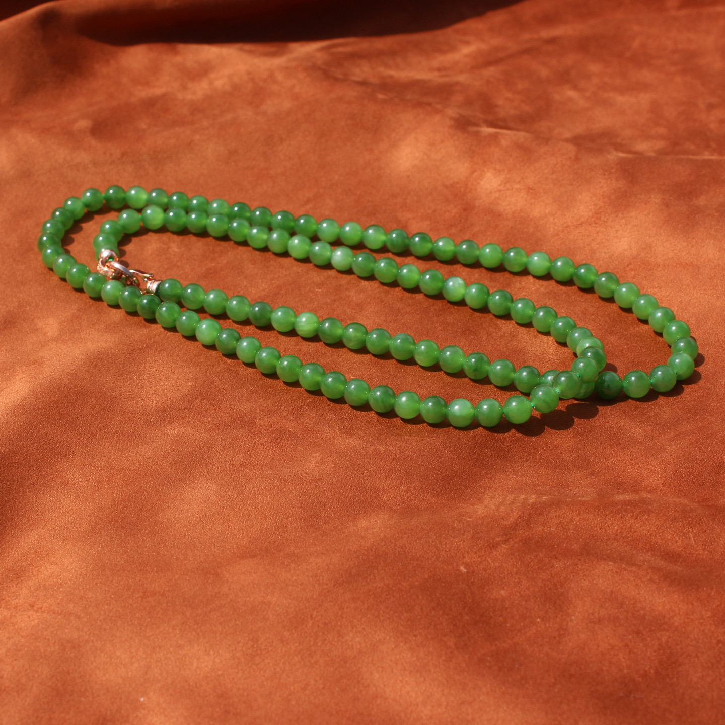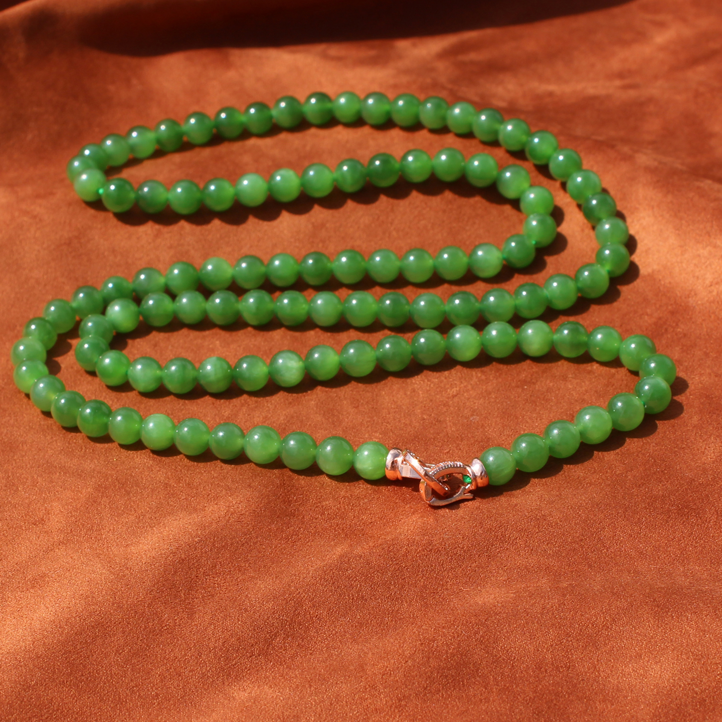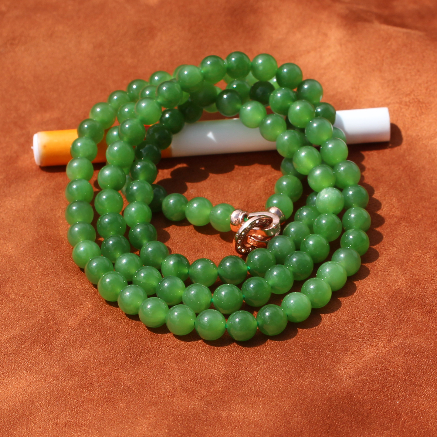 方言和田玉精品俄罗斯绿色名品阳绿碧玉无黑点6mm项链多圈手串A6