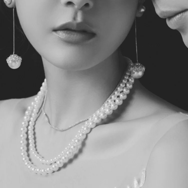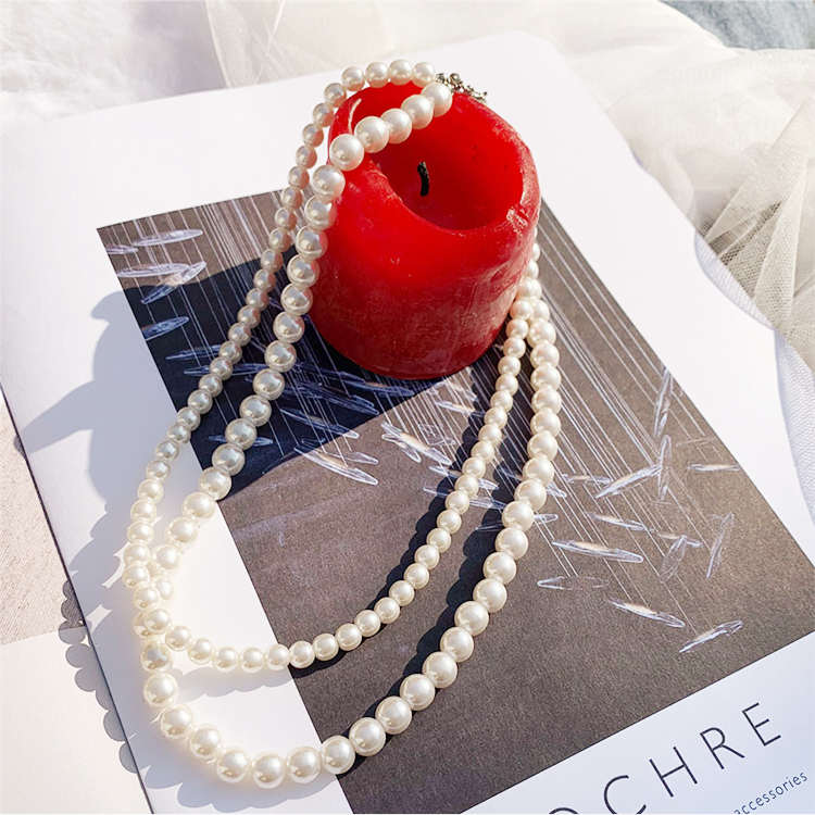 多层珍珠项链双层叠戴颈链法式新娘拍照配饰品女款百搭锁骨链1062