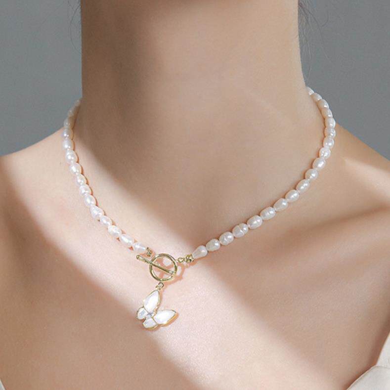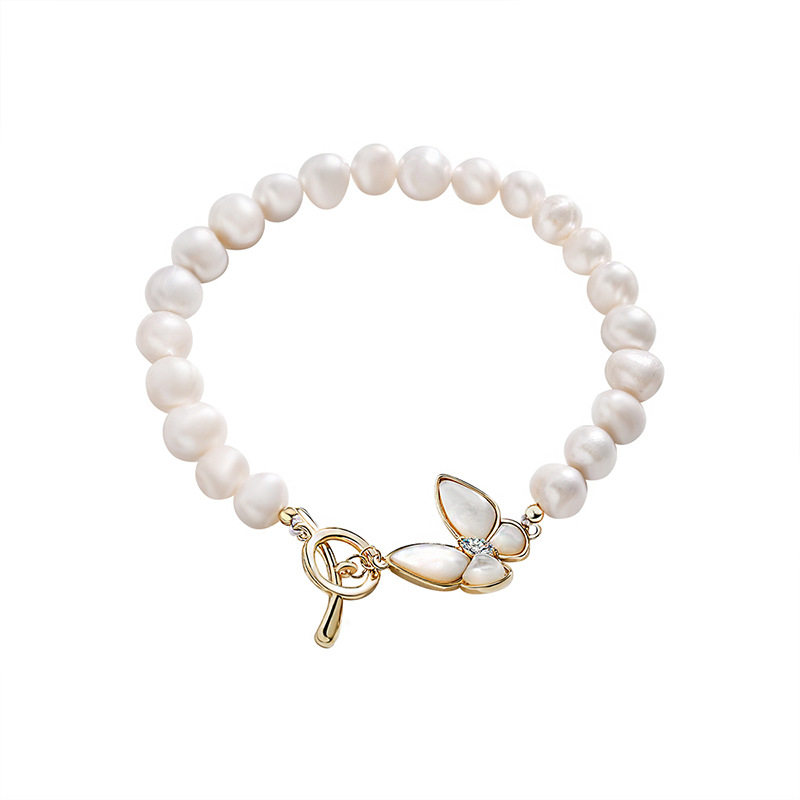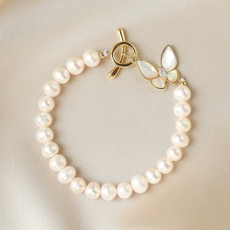 戴拉淡水珍珠手链女项链时尚套装潮蝴蝶饰品 手串珠高级感锁骨链