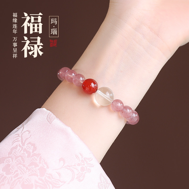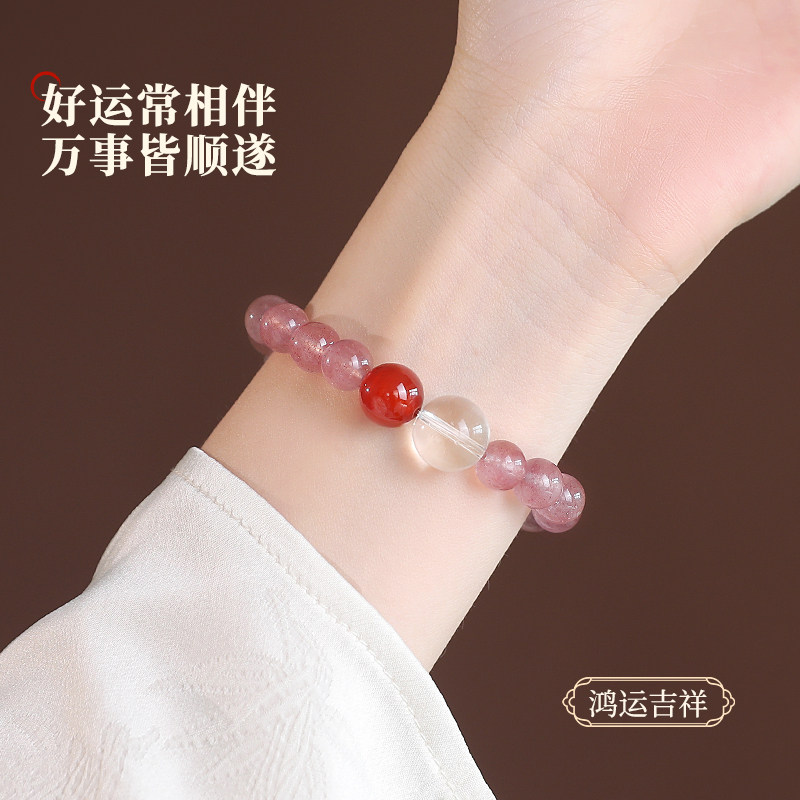 红色玛瑙草莓晶串珠手链女款轻奢小众精致高级感手饰2026新款手串