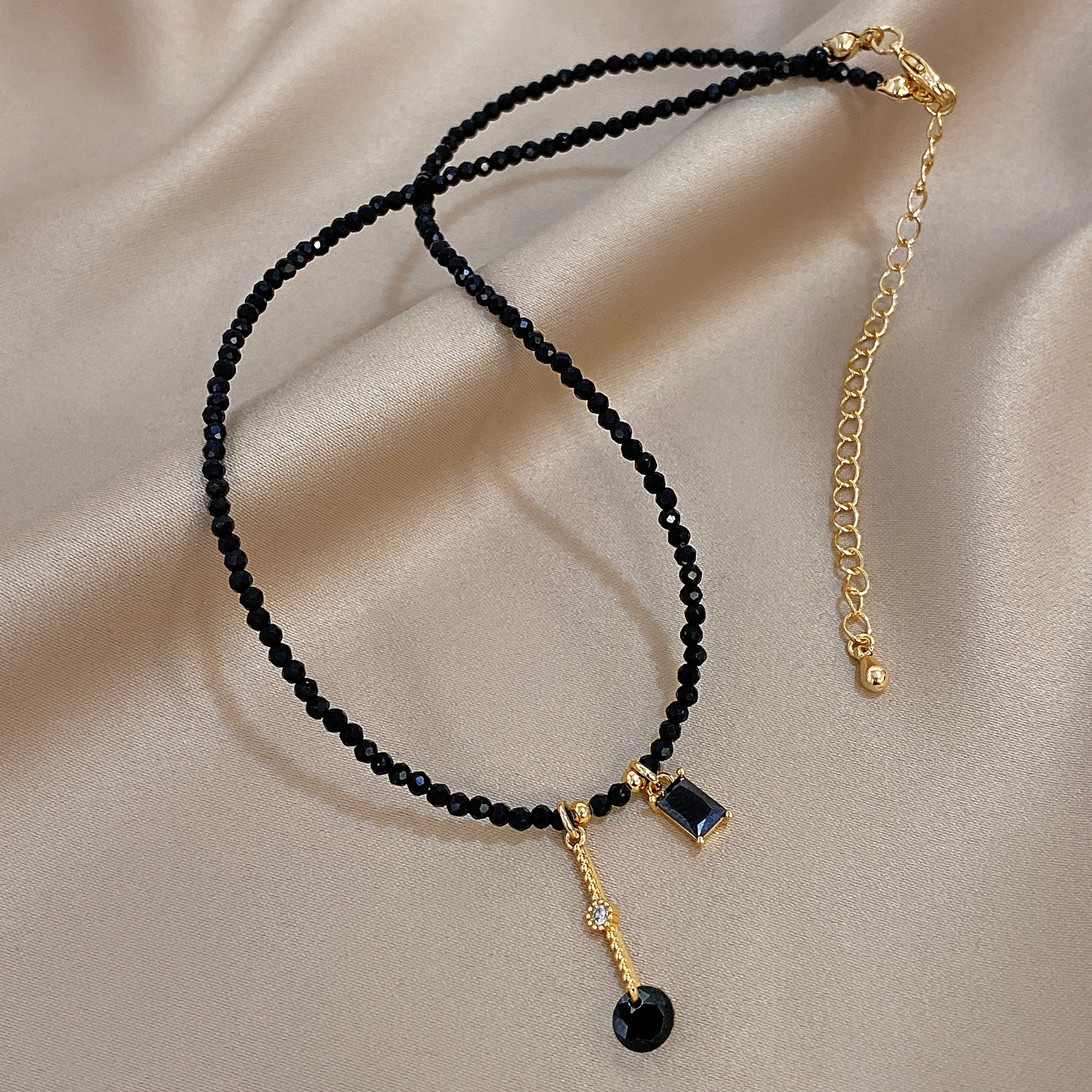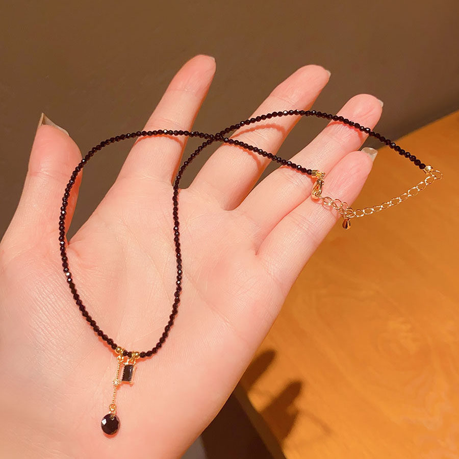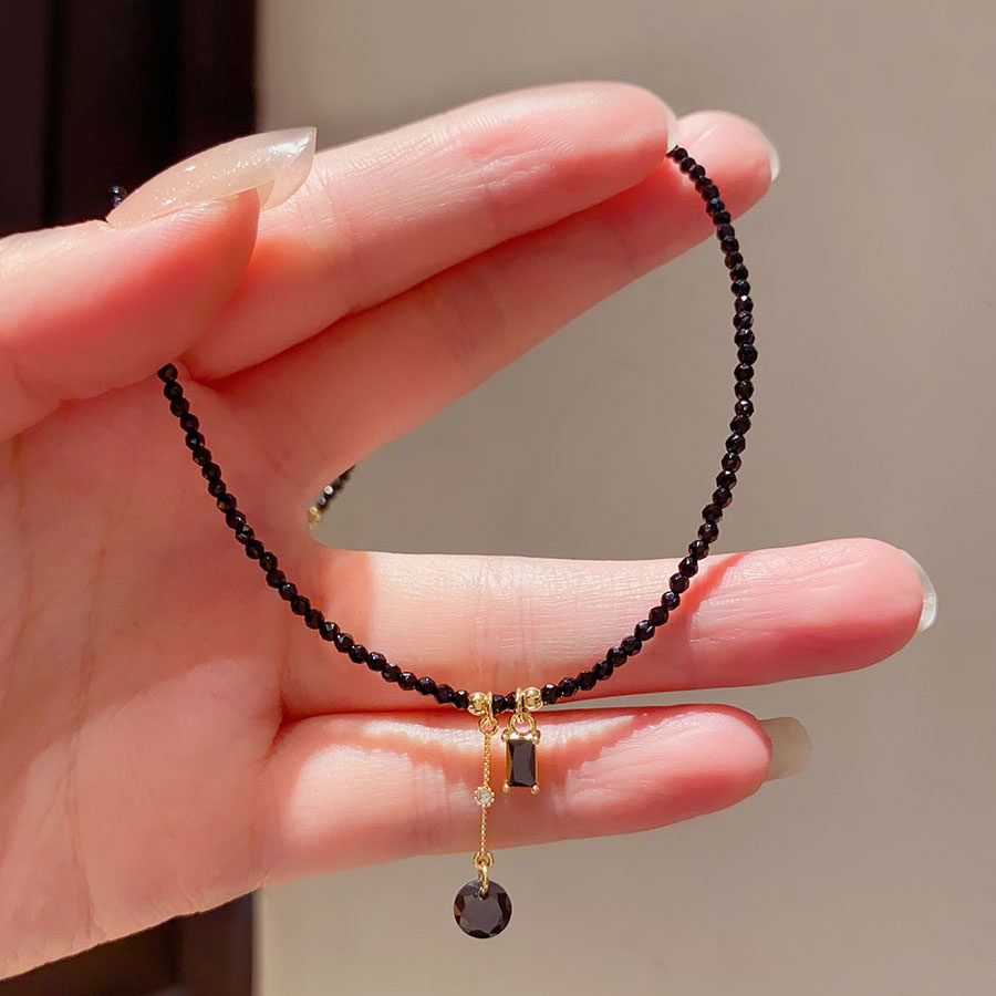 复古黑色水晶项链女高级感小众设计感短款锁骨链2025年新款脖子链