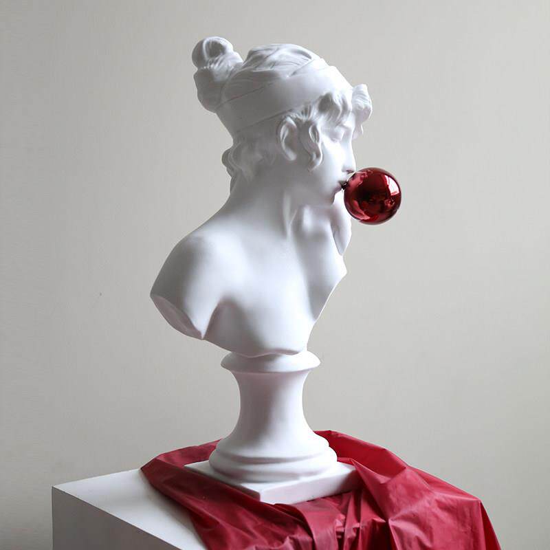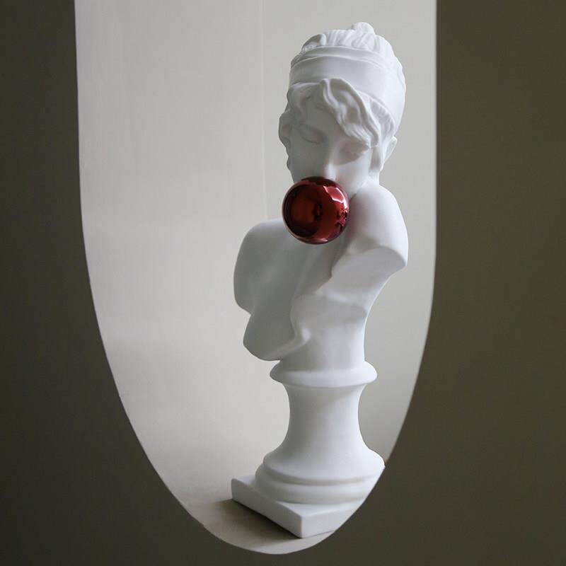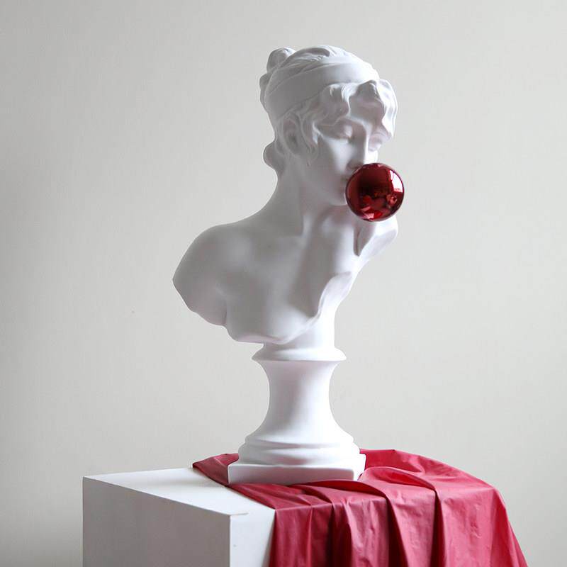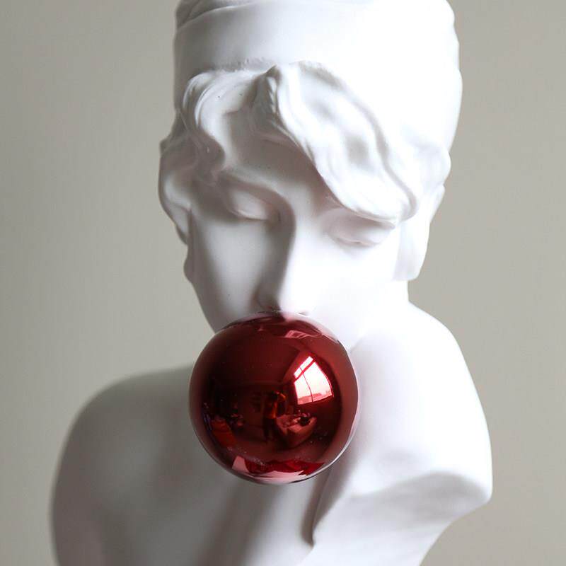 珠光红色少女吹泡泡雕塑人物艺术高级感法式覆古玄关柜装饰摆件