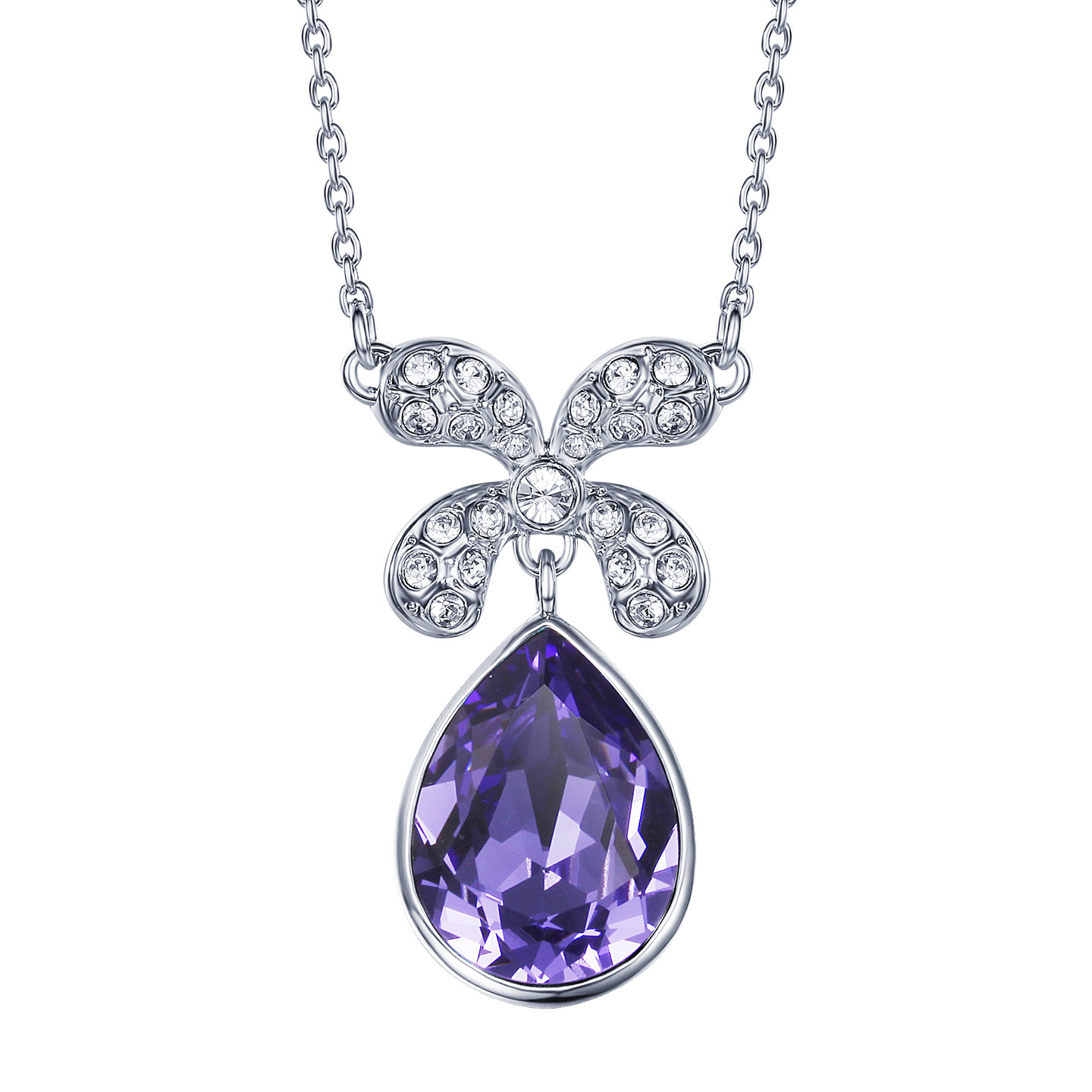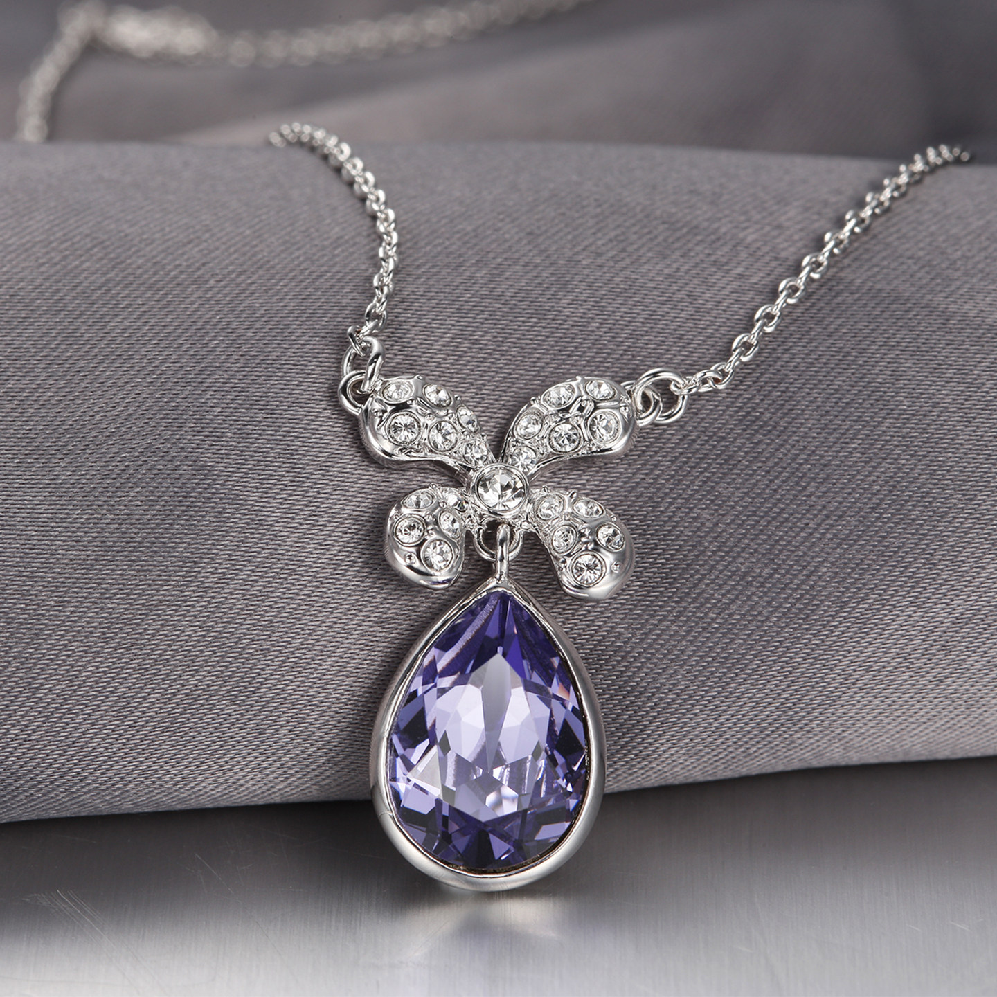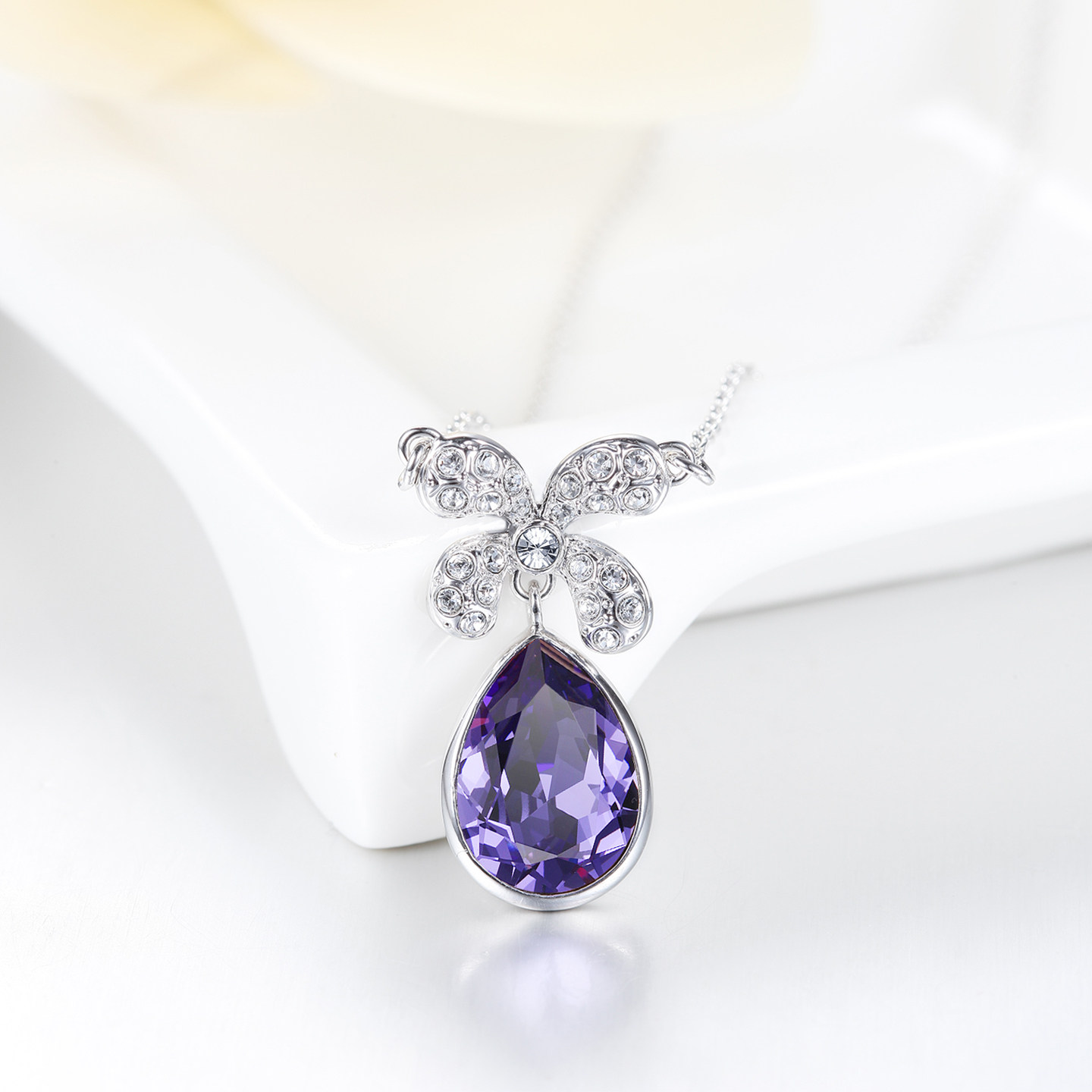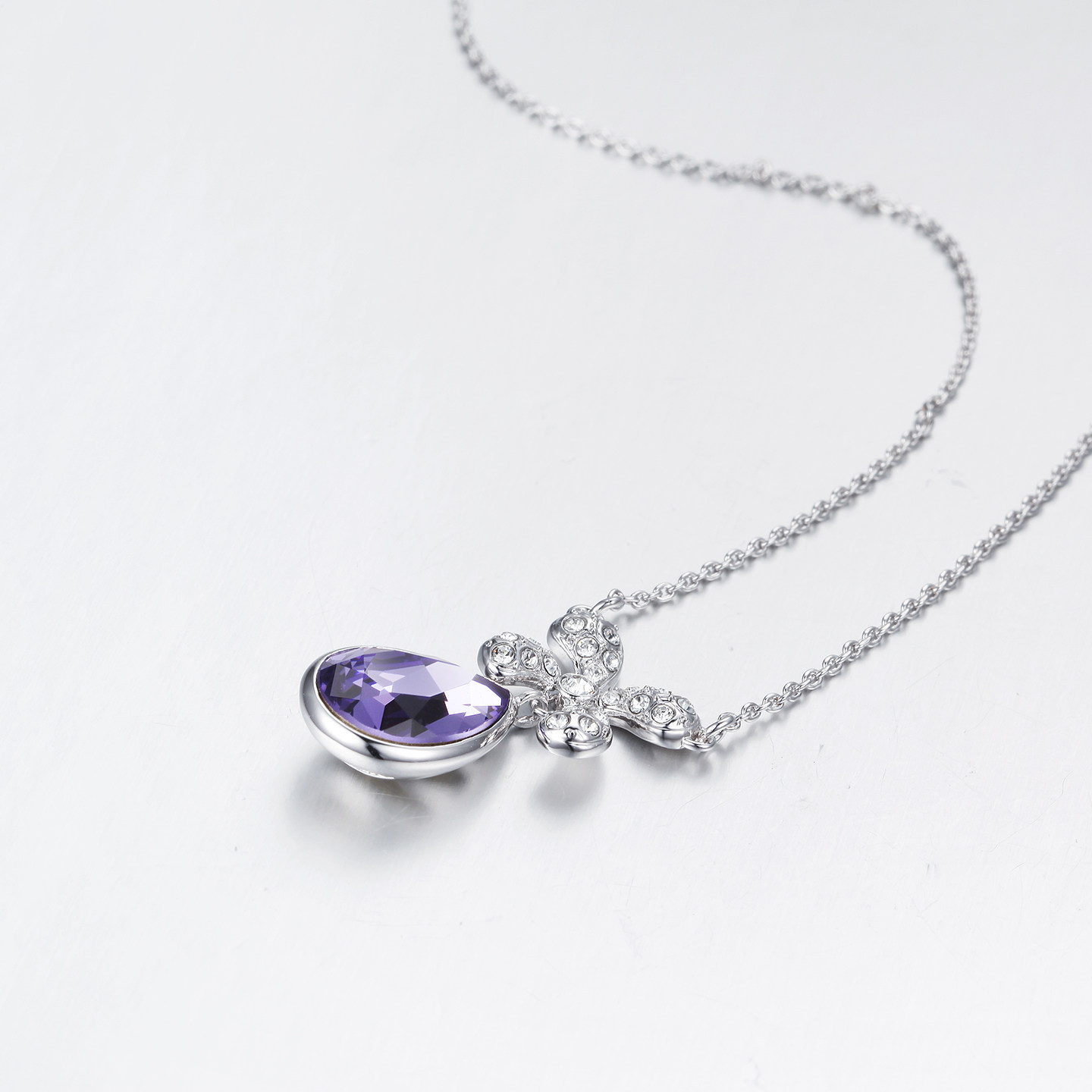 伊泰莲娜项链女锁骨链短链吊坠四叶之恋紫色水滴项链配饰