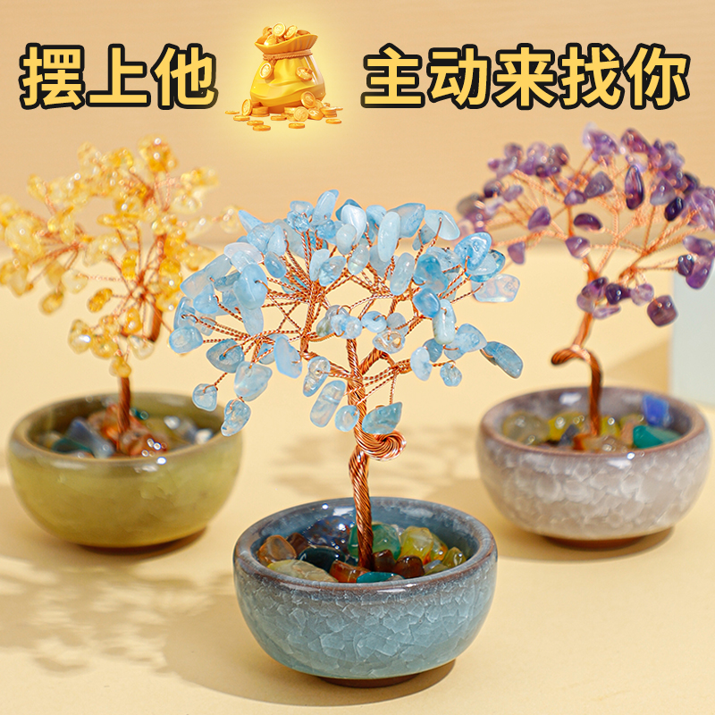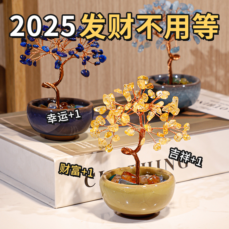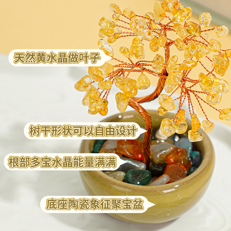 天然黄水晶树七彩晶石紫水晶发财树奢侈高端客厅装饰招财摆件
