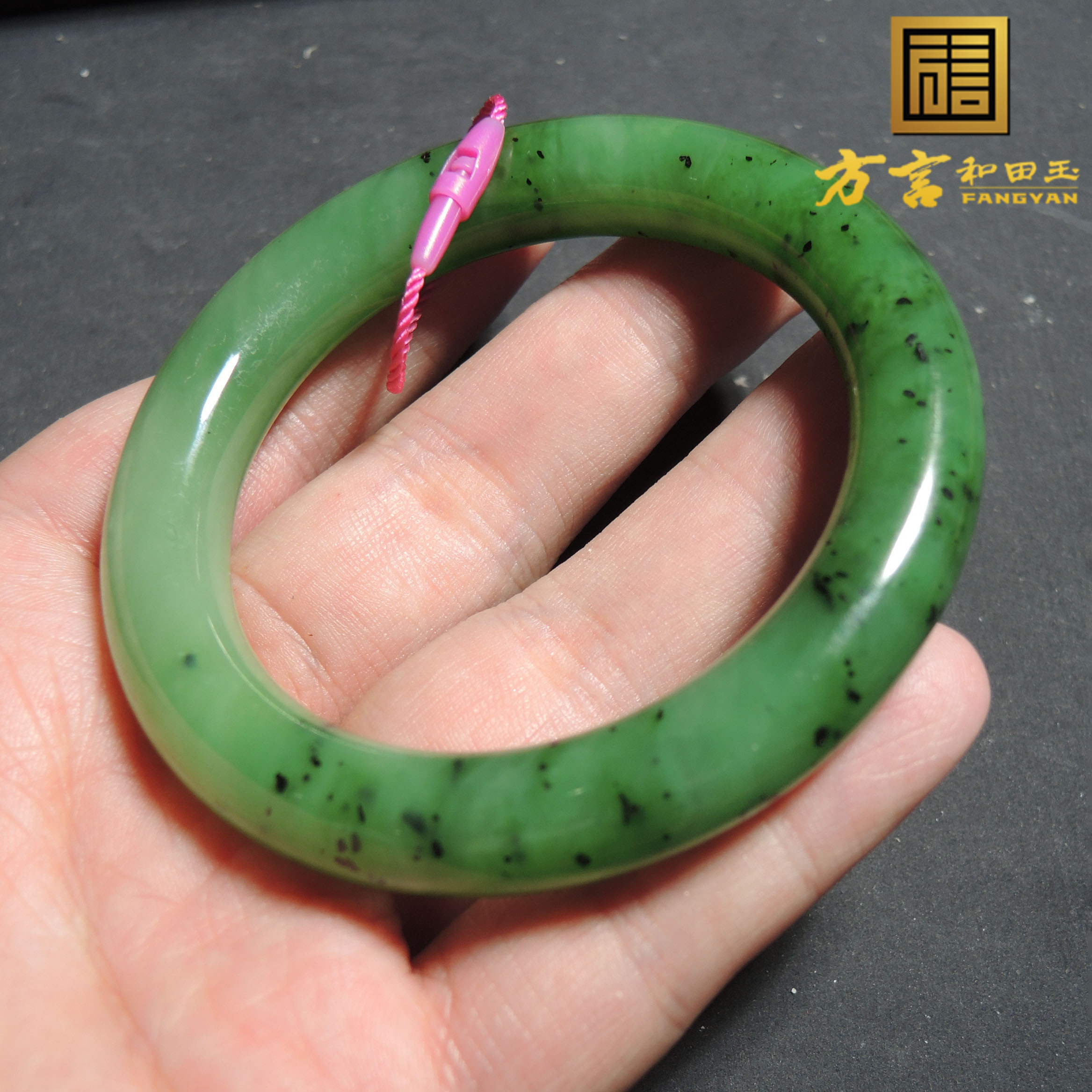 方言品牌和田玉臻品乌兰海猕猴桃果绿色碧玉卡55mm圆条手镯R2