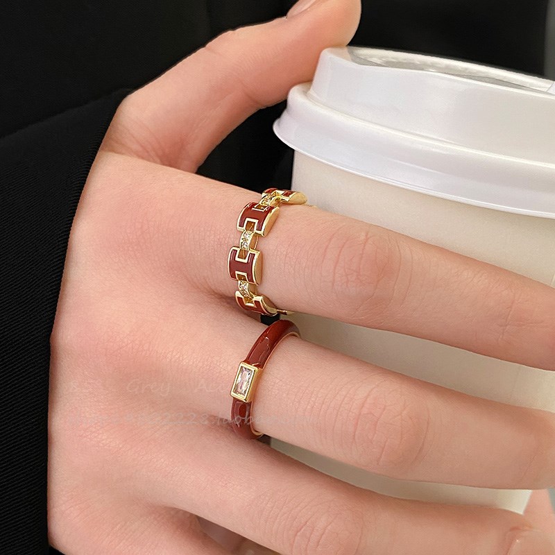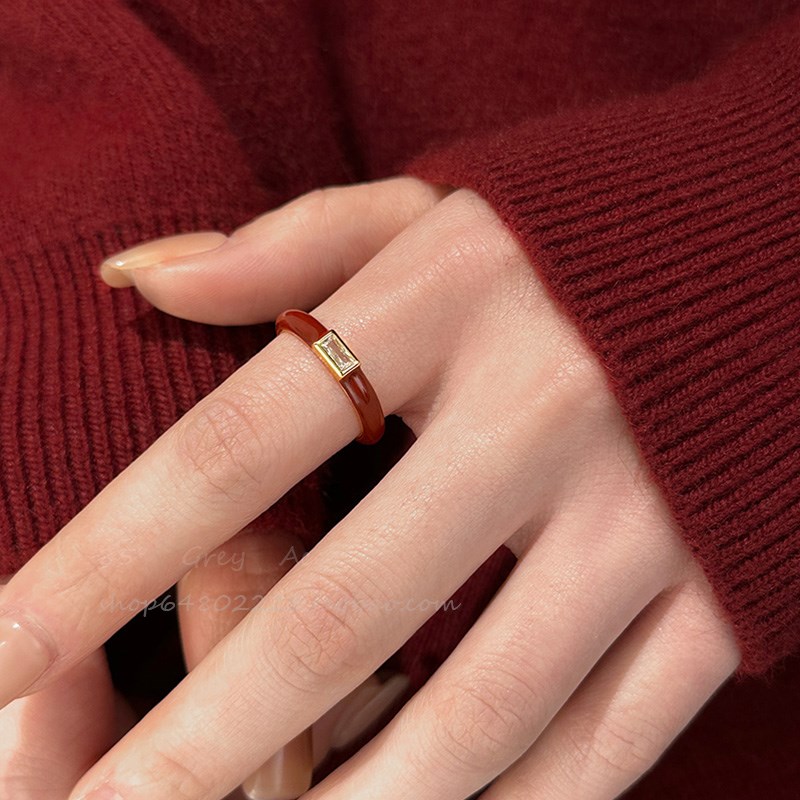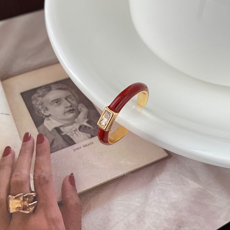 法式高级感滴釉安可拉o红色锆石戒指女轻奢气质食指戒时尚开口指