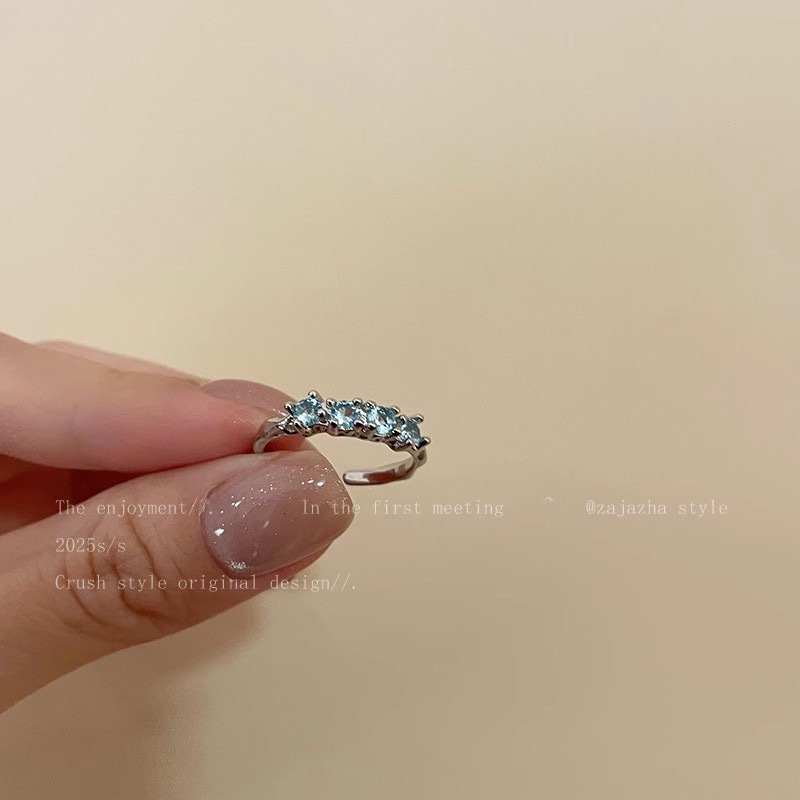 蓝色星星锆石戒指女轻奢小众高级感食指戒时尚个性叠戴可调节指环