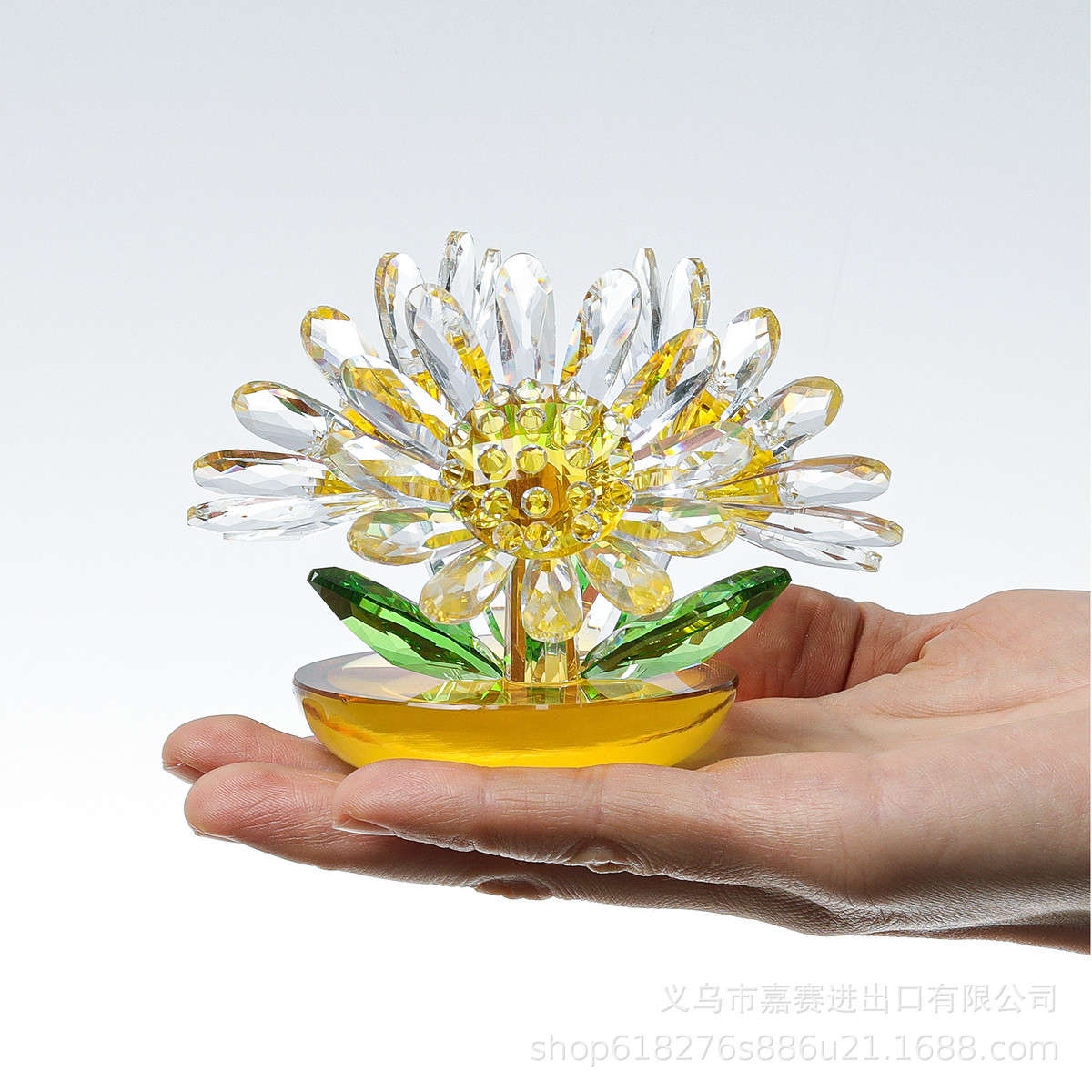 热销桌面简约现代风迷你水晶工艺品中式办公摆件仿真花黄色小雏菊