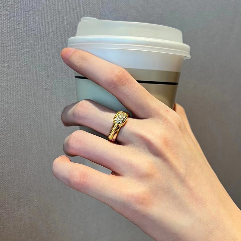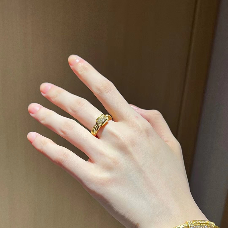 黄金点钻戒指999足金莫桑钻小方糖食指戒新款镶嵌琴纹金戒指女款