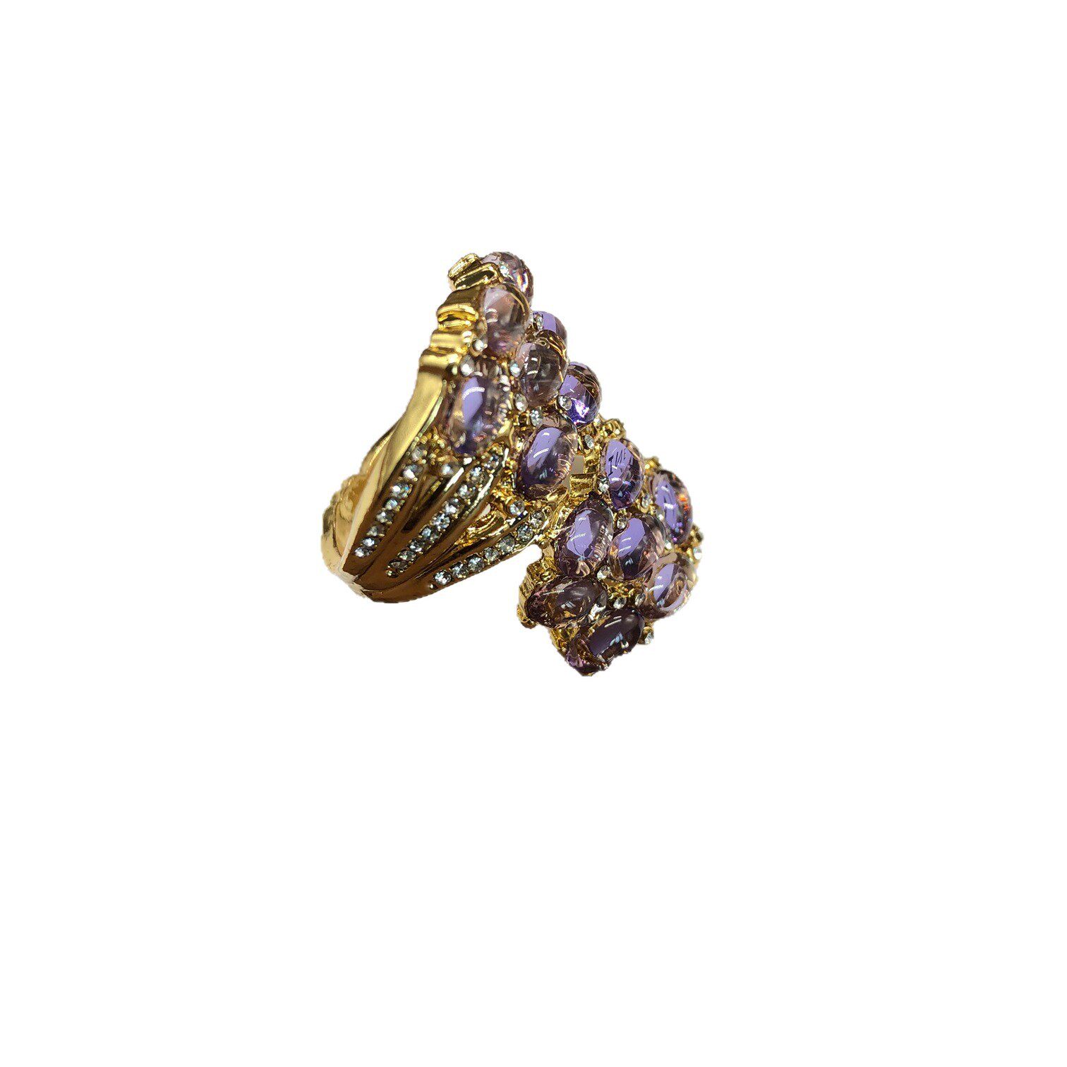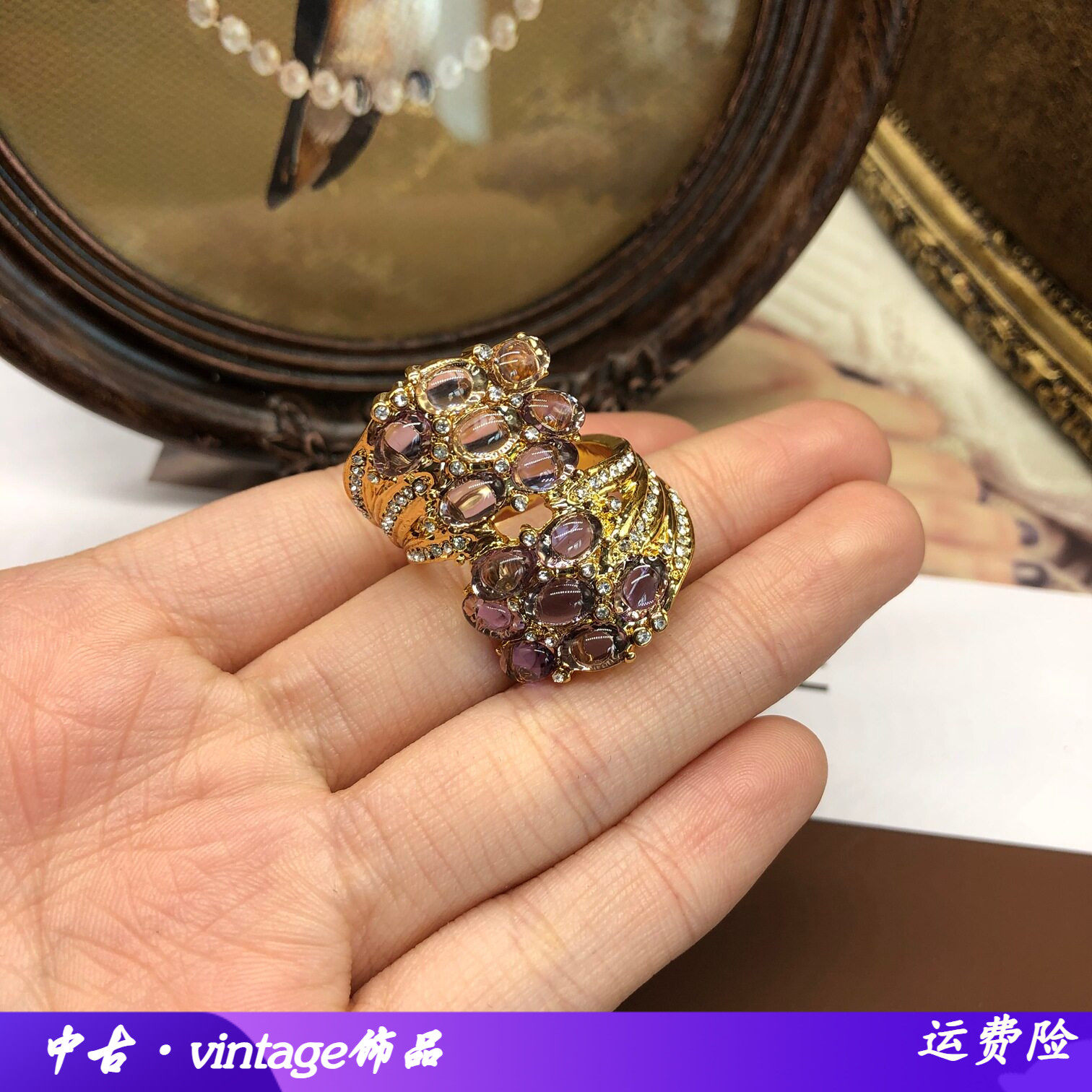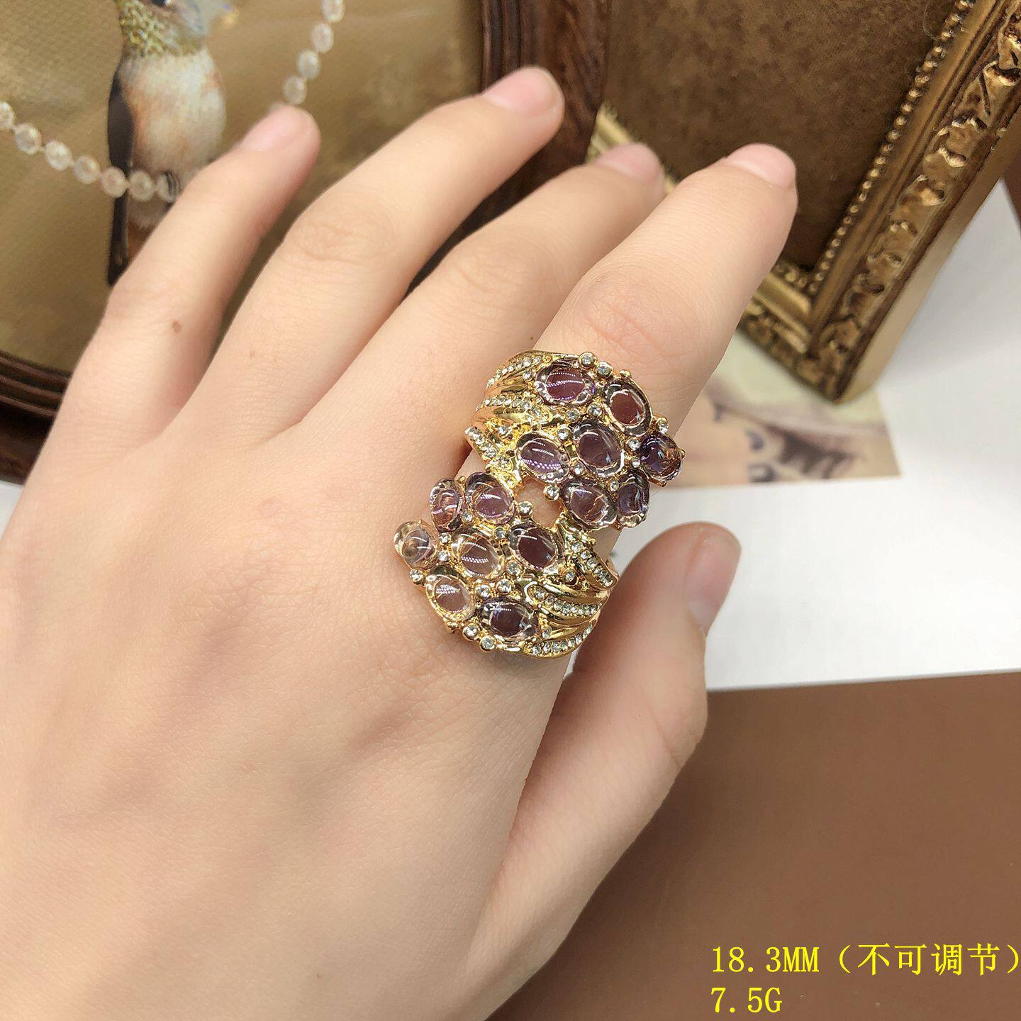 精致时尚百搭淡紫色果冻树脂戒指电镀真金中古首饰百搭饰品优雅