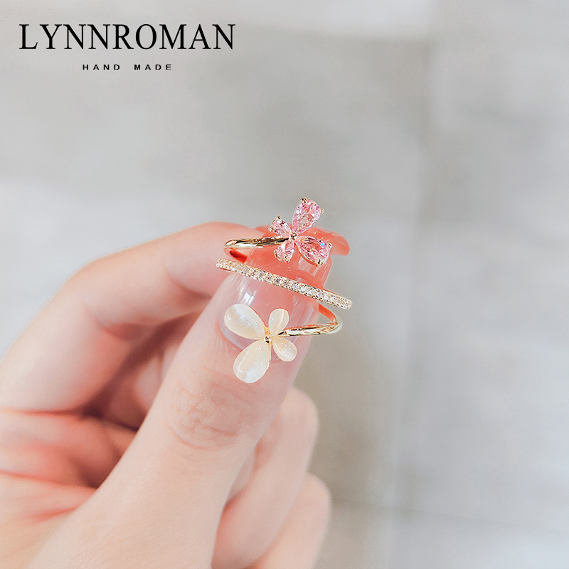 LYNNROMAN高级感双笙时尚蝴蝶戒指女小众设计开口戒轻奢时尚指环