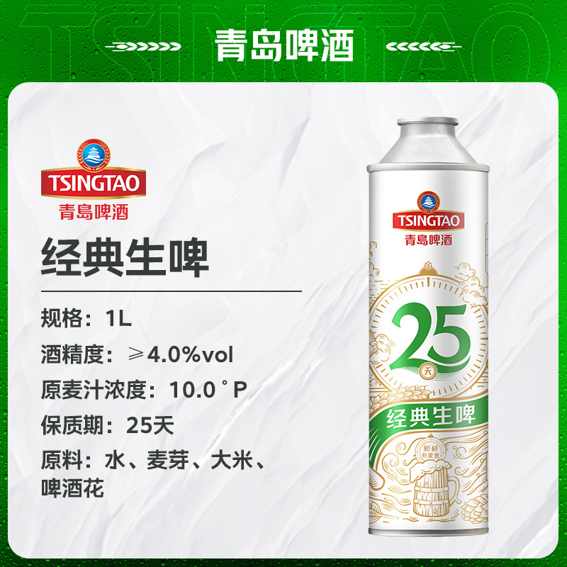 青岛啤酒经典生啤1L*6瓶礼盒装整箱包邮