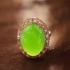 春季新品天然和田玉戒指女双圈满钻苹果绿碧玉蛋面镶18k金指环a货