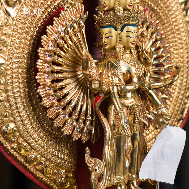 欧斯特 千手观音铜像 乔迁新居客厅中式摆件尼泊尔铜全鎏金10寸