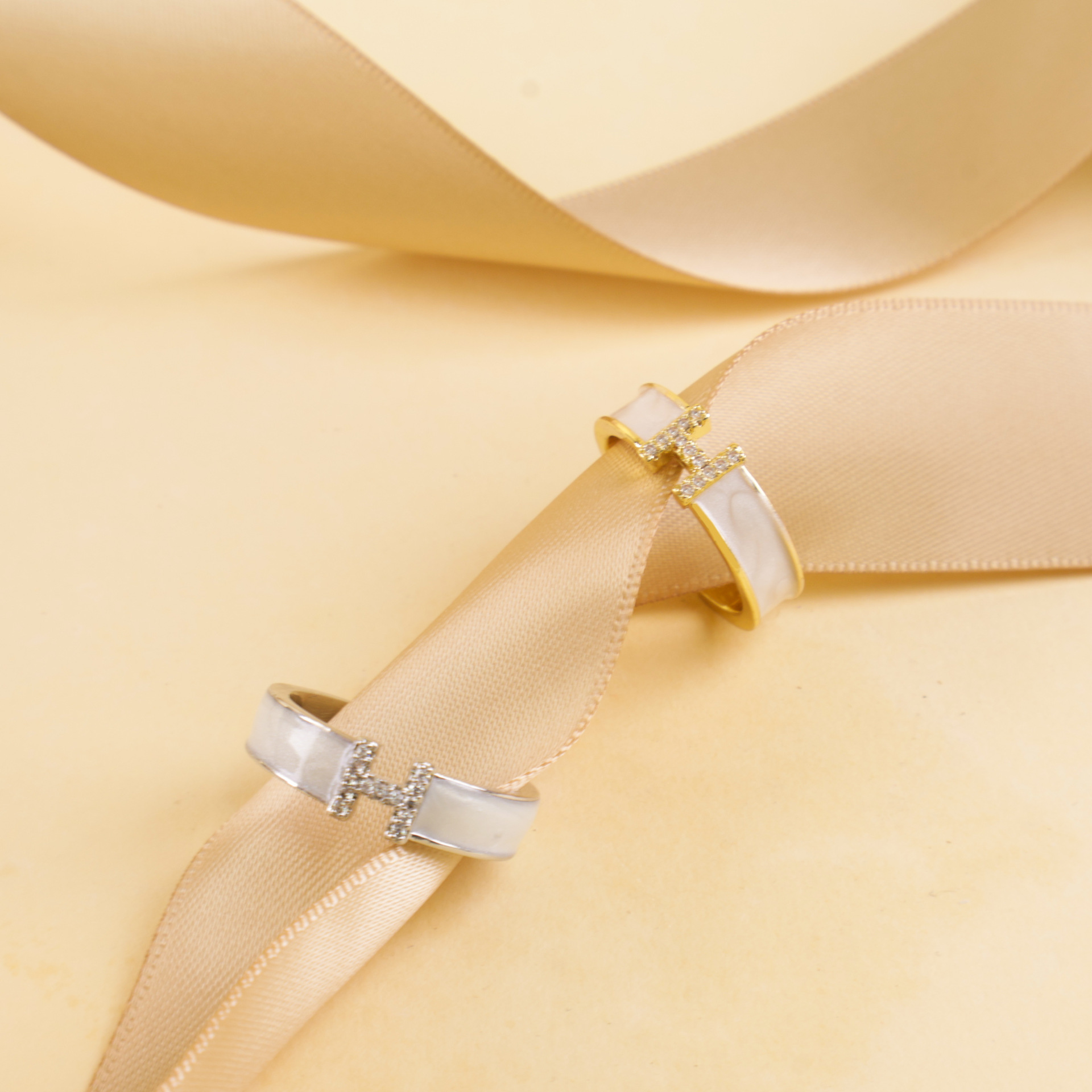 戒指H字母锆石开口戒指女轻奢小众设计高级感精致ins风潮时尚