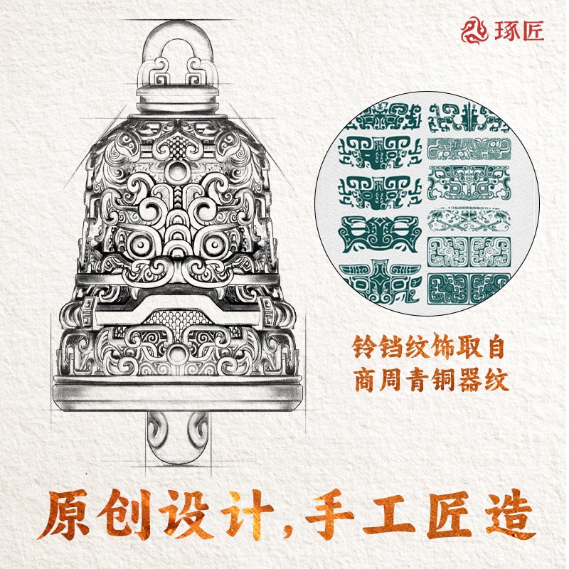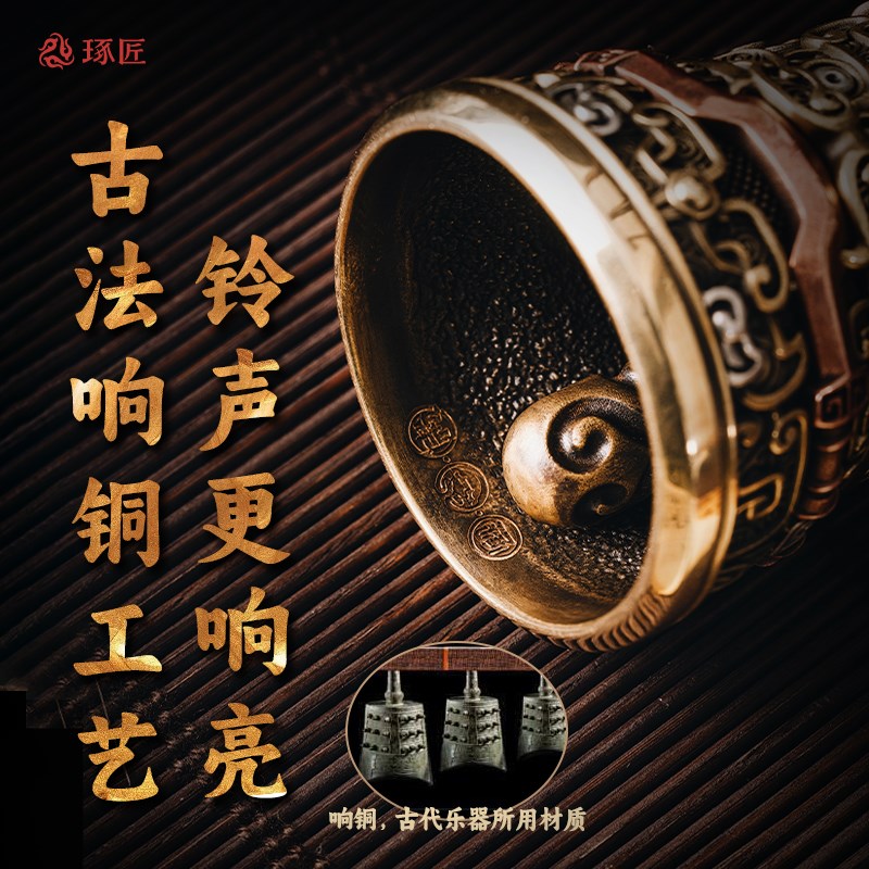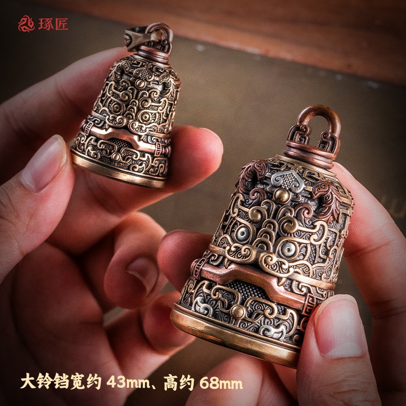 琢匠大青铜纹铃铛摆件复古挂饰铜铃汽车挂件国风文创狮咬剑手把件