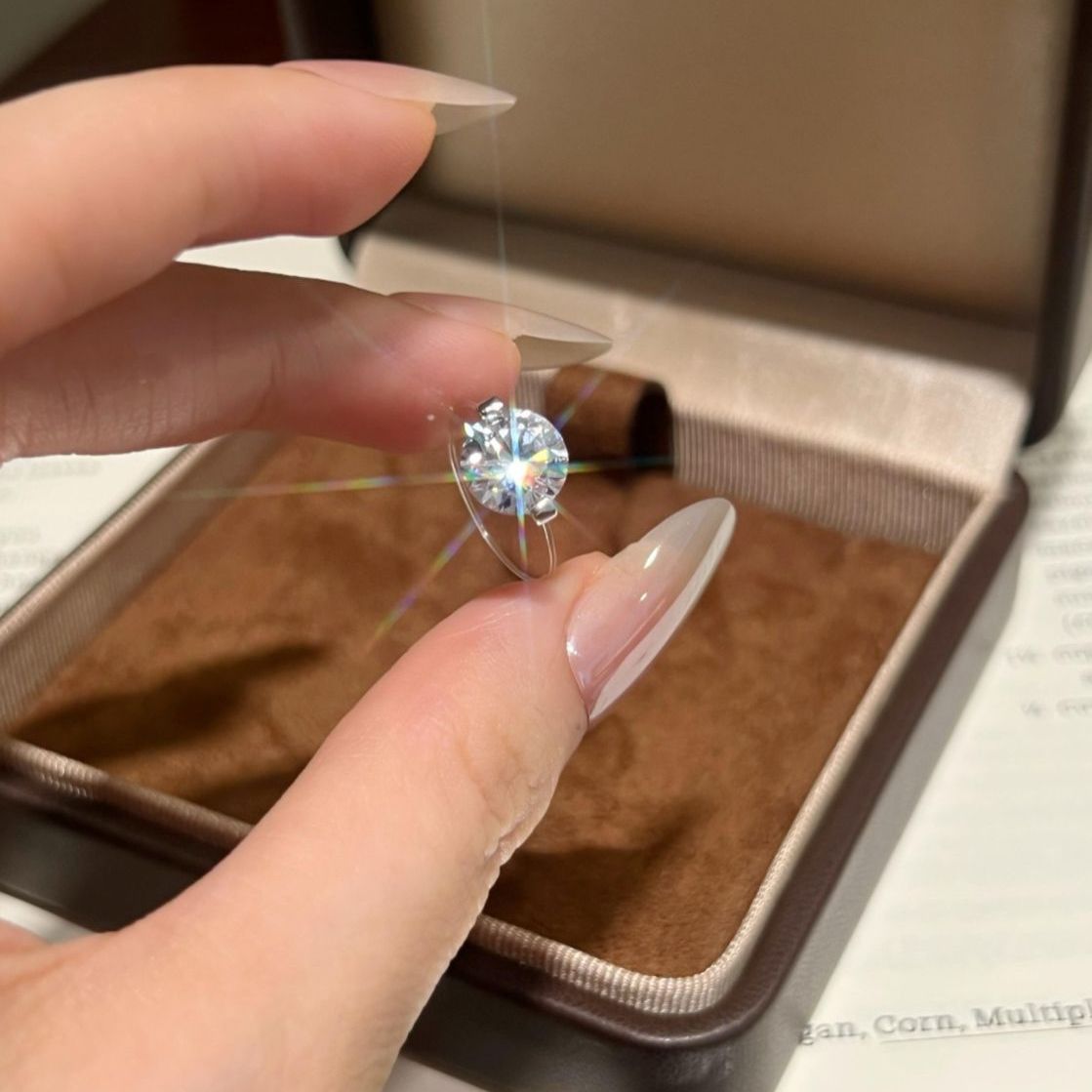 人鱼隐形之泪轻奢透明鱼线设计法式戒指简约爆闪高级锆石新款