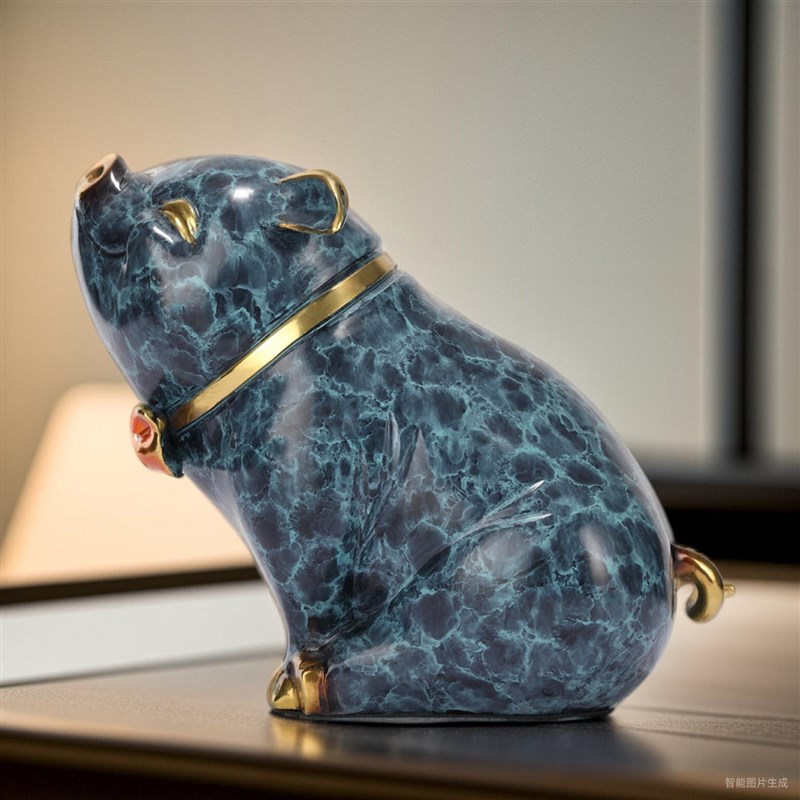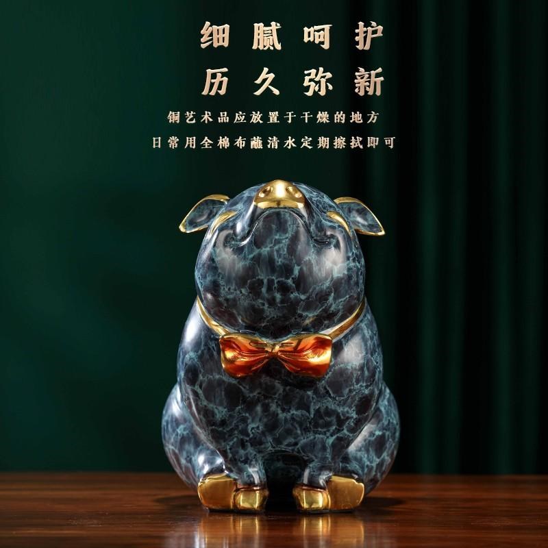 速发秦汉天禧 黄铜金猪摆件吉祥圆满家居客厅博古架玄关办公室 装