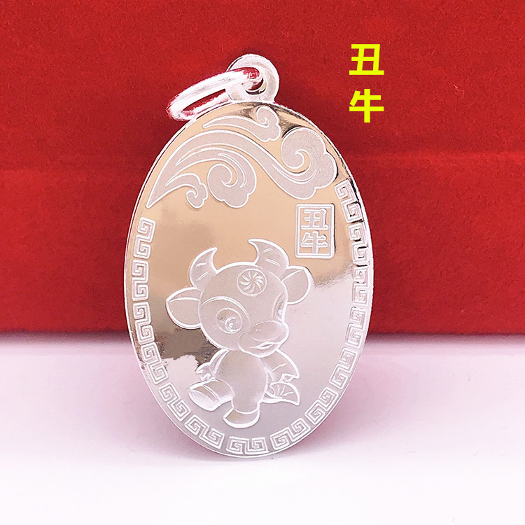 2021年新款足银999十二生肖吊坠平安福实心牌鼠牛虎兔龙蛇马羊猴