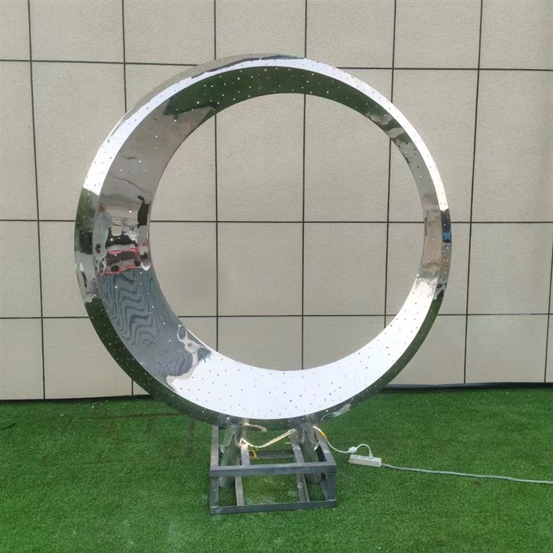 定制不锈钢圆环月亮雕塑镜面金属拉丝效果小区售楼处公园广场摆件
