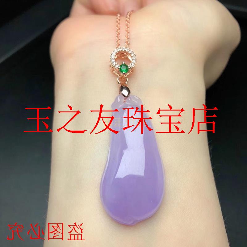 高端翡翠色紫罗兰福瓜吊坠精选冰种玉坠挂件平安福禄寿项坠女饰品