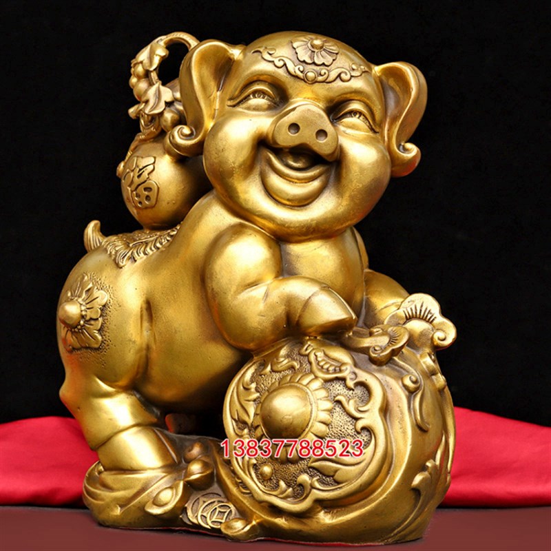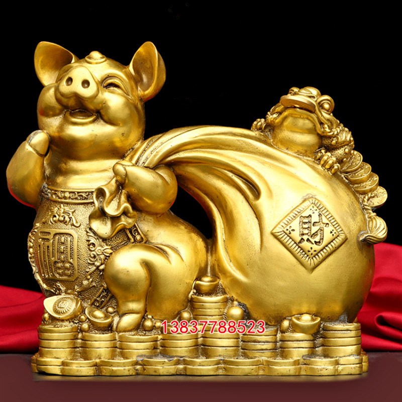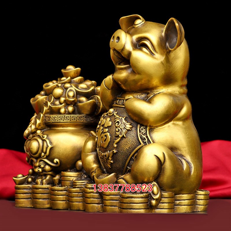 铜猪摆件生肖猪福字元宝财猪大号金猪存钱罐家P居办公装饰开业礼