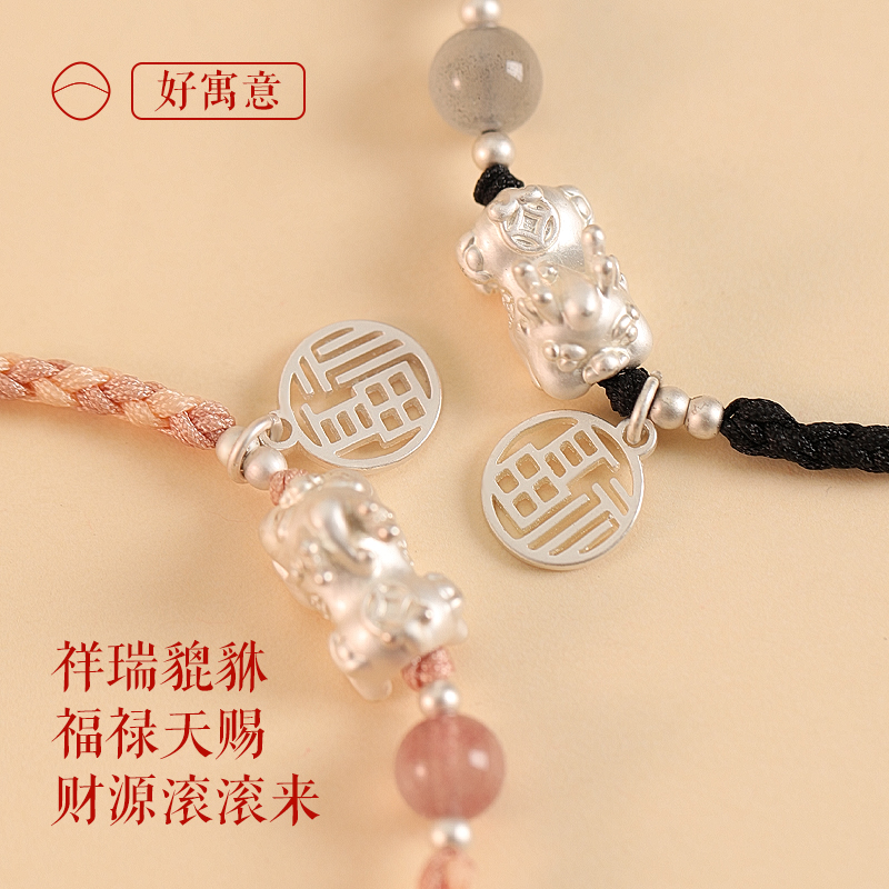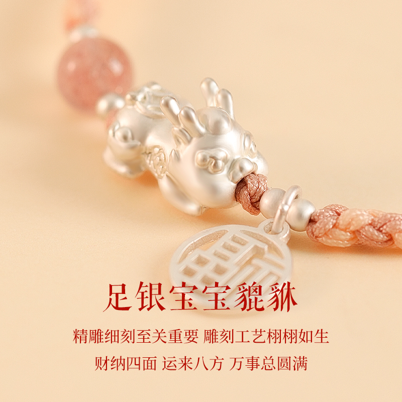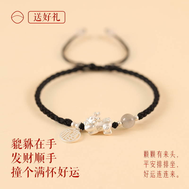 2025蛇年足银貔貅手链女本命年转运珠编织绳纯银红手绳护身符情侣
