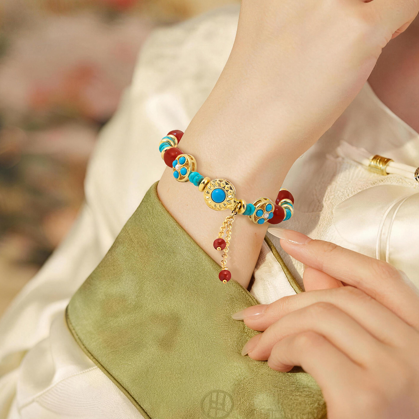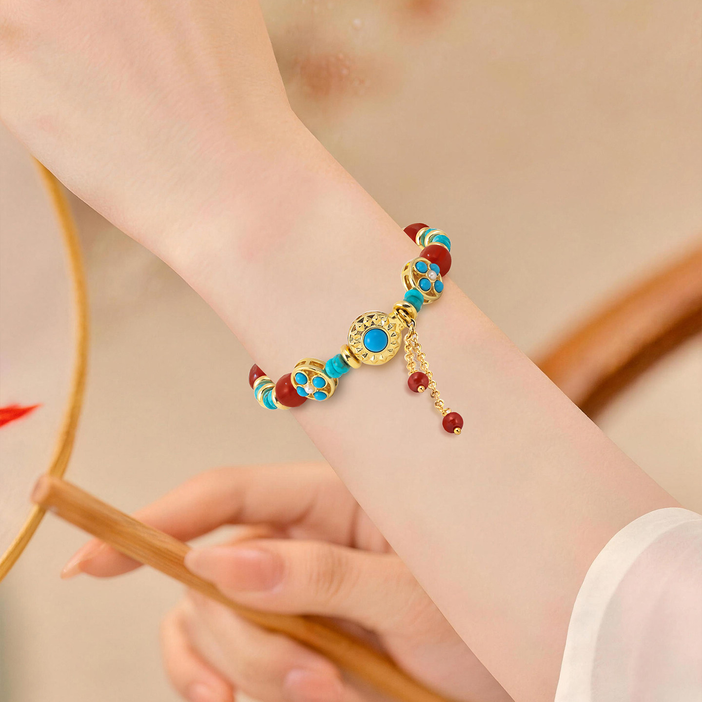 中式国风玄学手链女绿松多宝古风高级感珍珠红色玛瑙单圈串珠手串