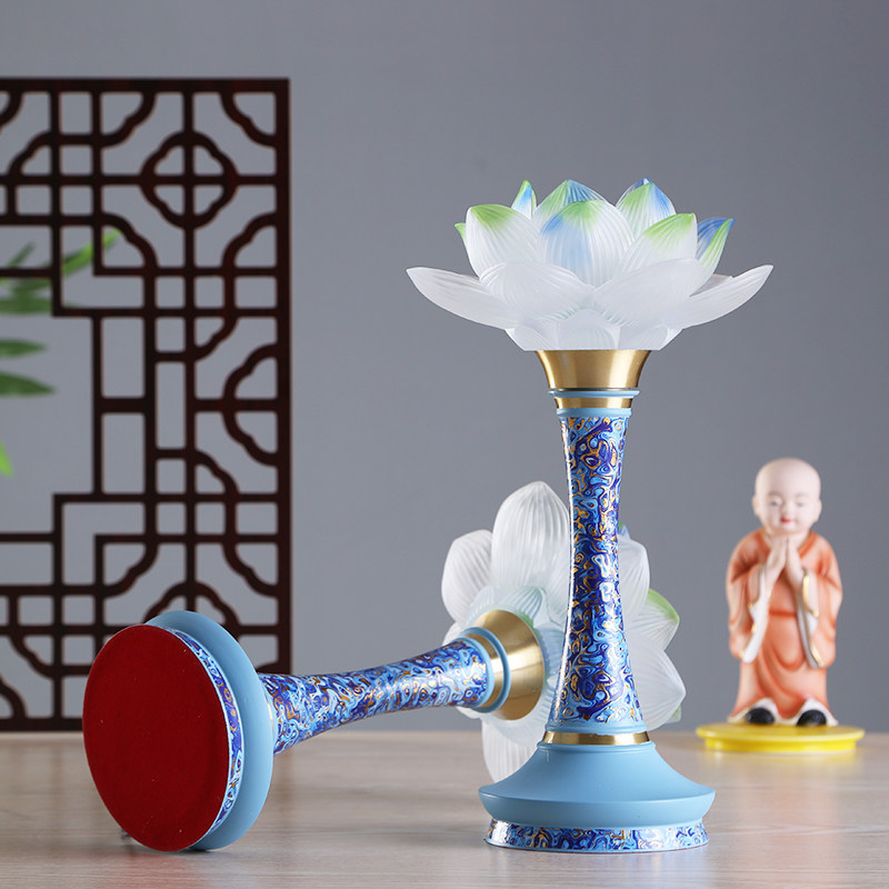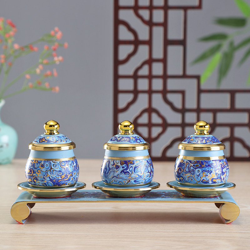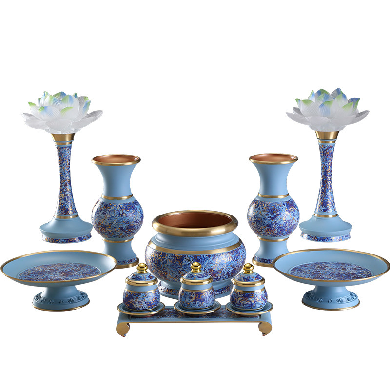 海之蓝珐琅彩供具全套纯铜蓝色供杯新中式国风佛具用品大全莲花灯