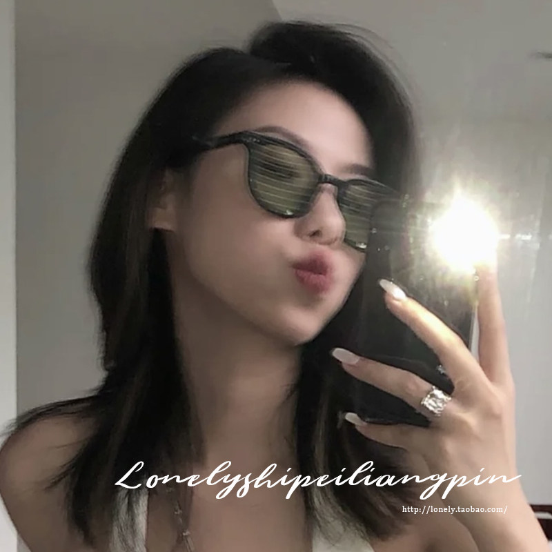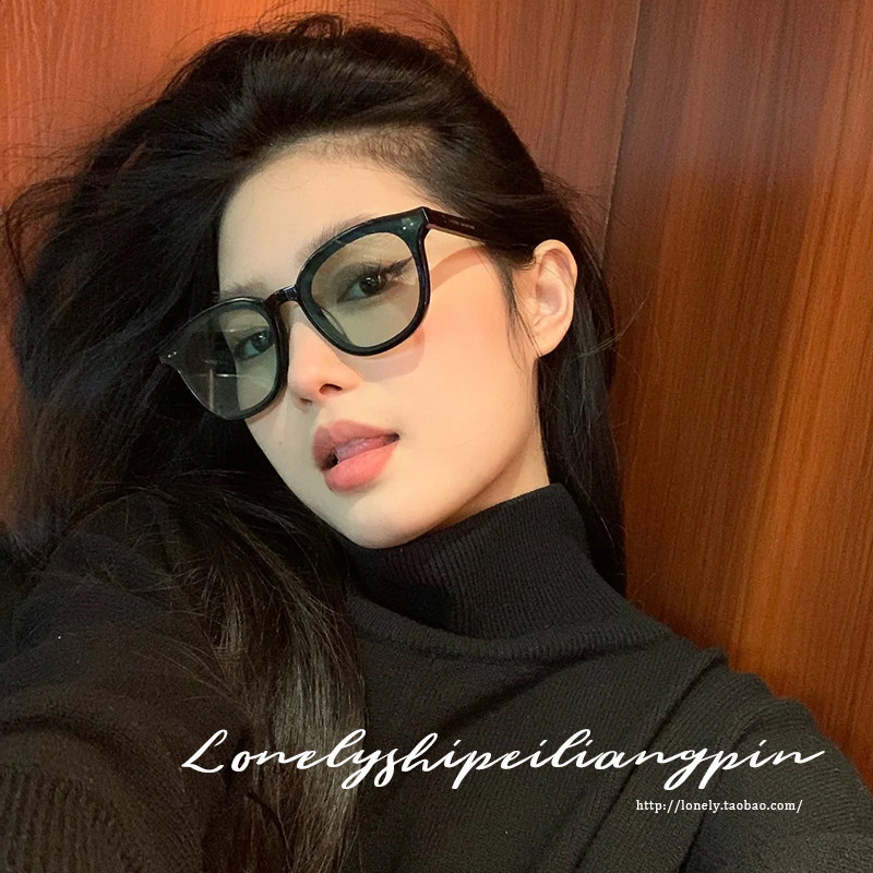 黑框绿色墨镜女高级感ins网红款大脸显瘦防紫外线强光太阳眼镜男