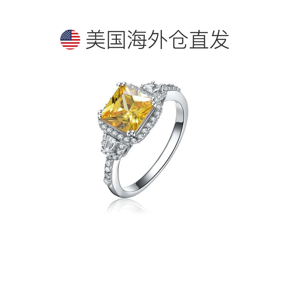 自营 GENEVIVE 纯银黄色立方氧化锆光环 Coctail 戒指 - 黄色 美