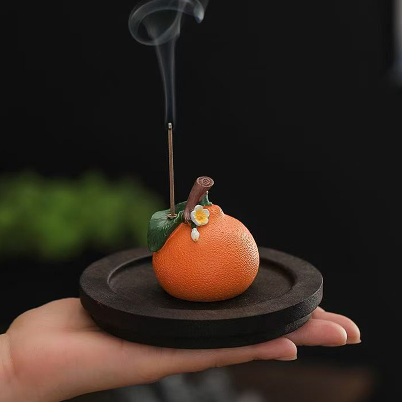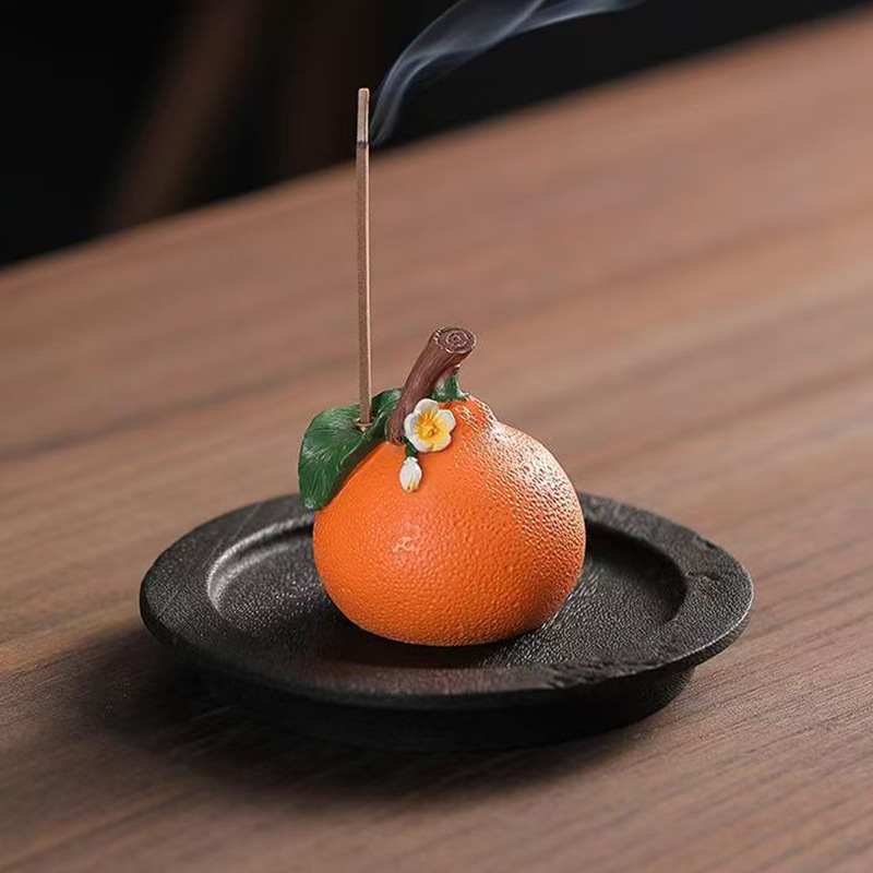 创意柿柿如意小柿子香薰炉线香插茶空间家用香薰茶宠茶桌装饰摆件