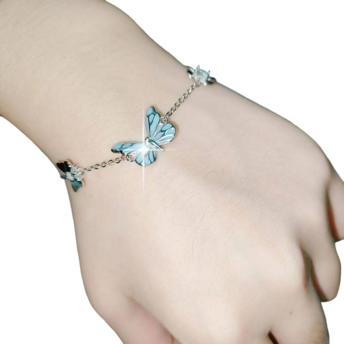 夜光蝴蝶项链~设计ins高级蓝色发光灵动蝴蝶手链女森系极光锁骨链