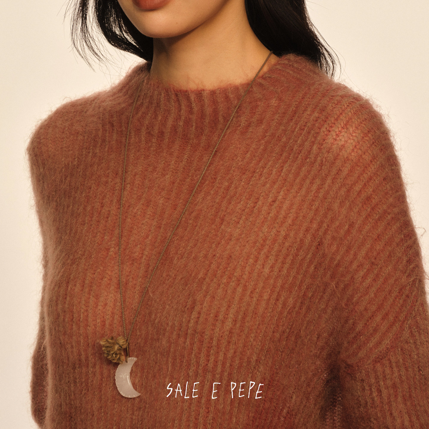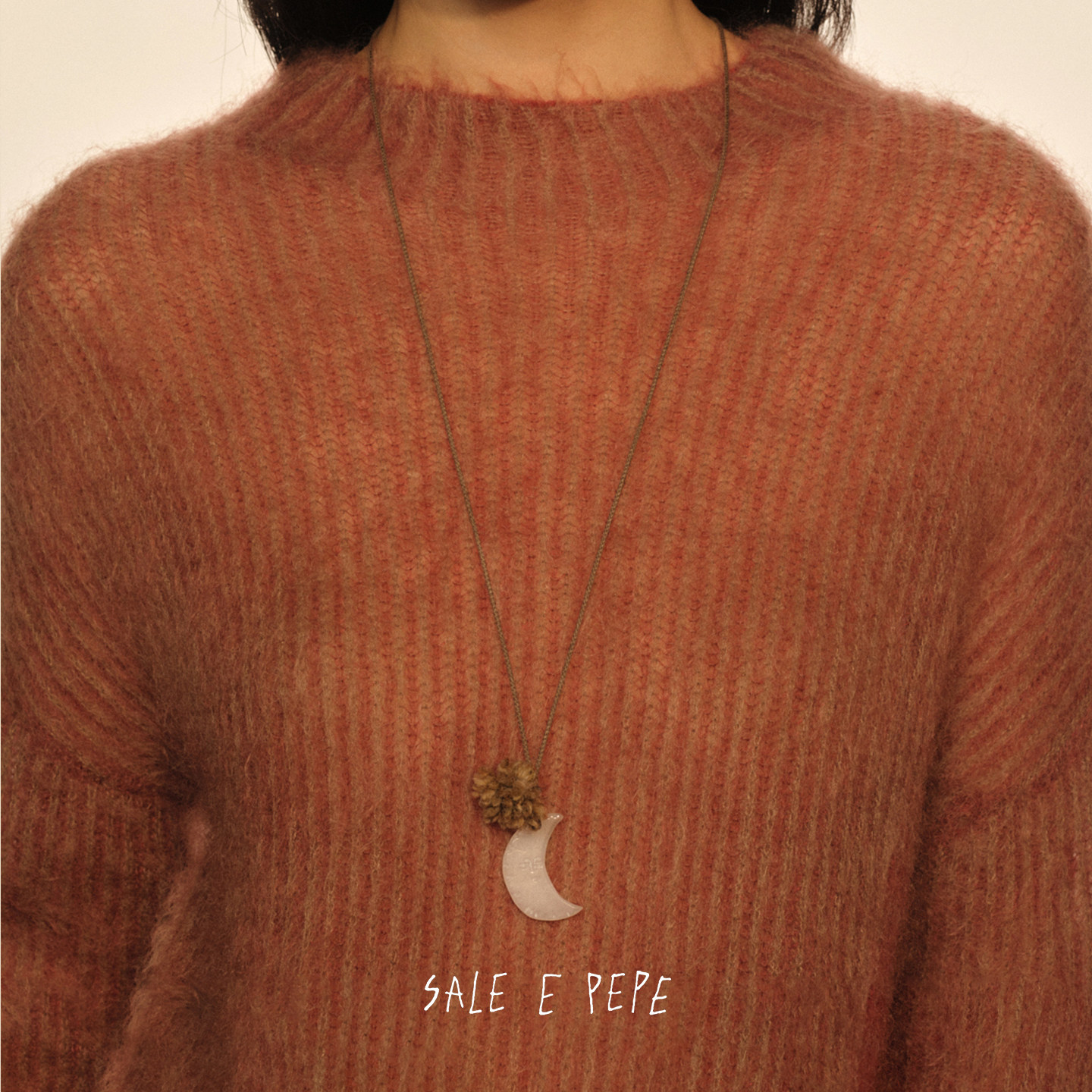 SALE E PEPE胡椒盐 白岫玉冰月编绳长项链 原创设计师毛衣链 默叙