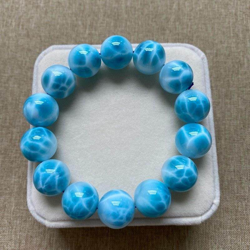 海纹石手链龟背纹大颗粒单圈拉利玛圆珠手串男女款珠链规格15.9mm