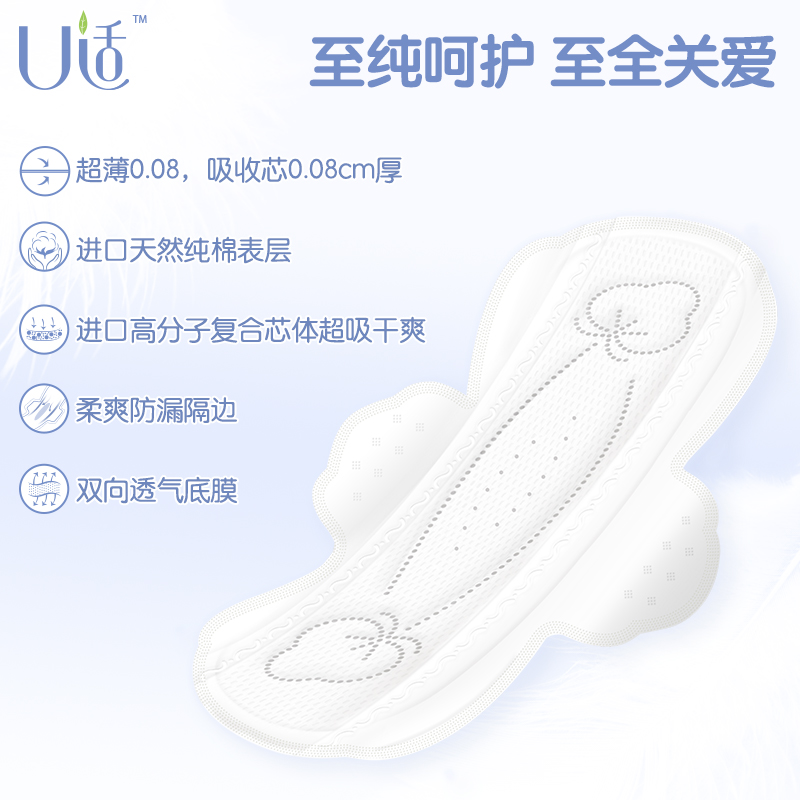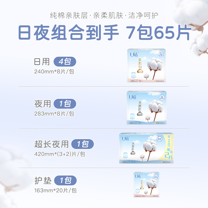 U适新国标卫生巾天然纯棉亲肤日夜迷你护垫组合装加长防漏姨妈巾