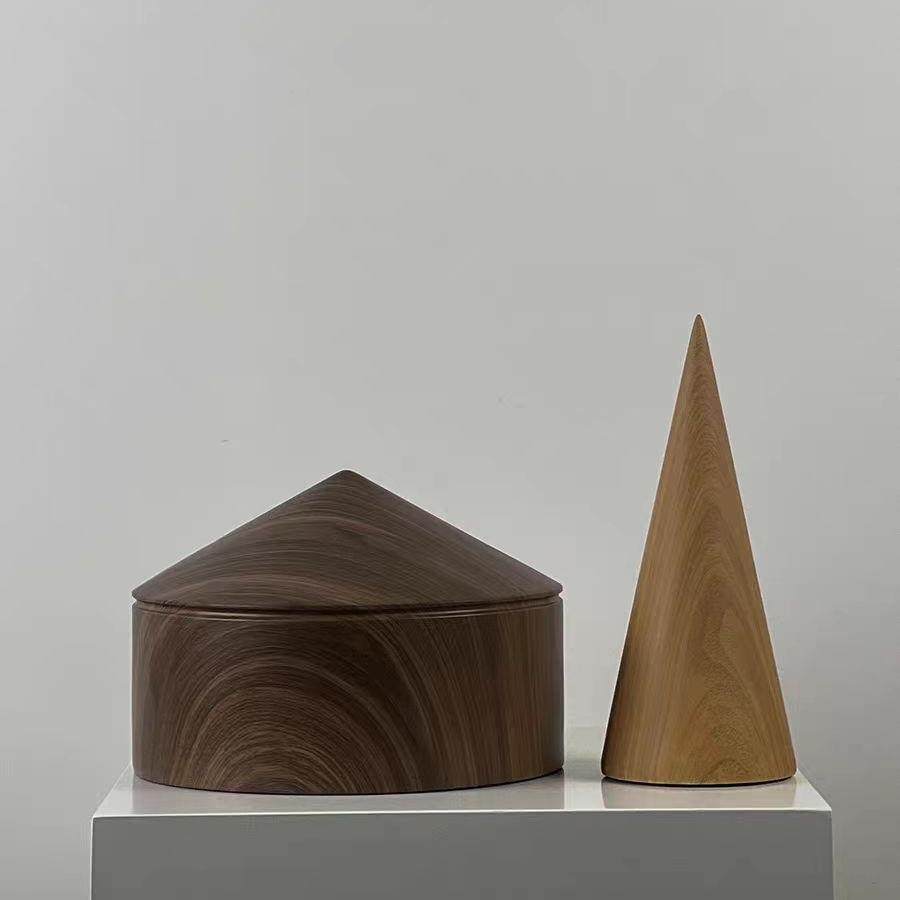 现代创意简约设计感木纹树脂锥形几何摆件轻奢样板间客厅软装饰品