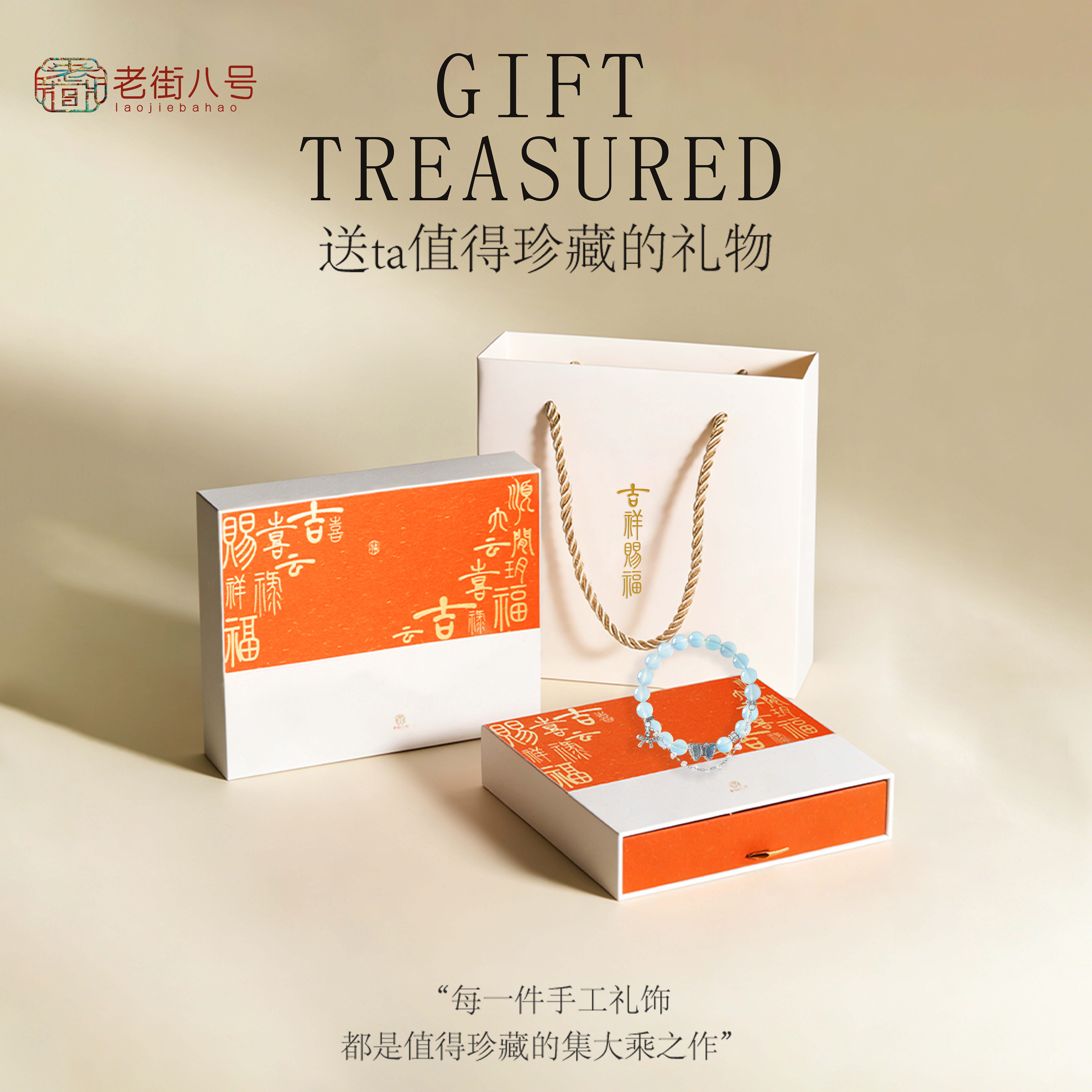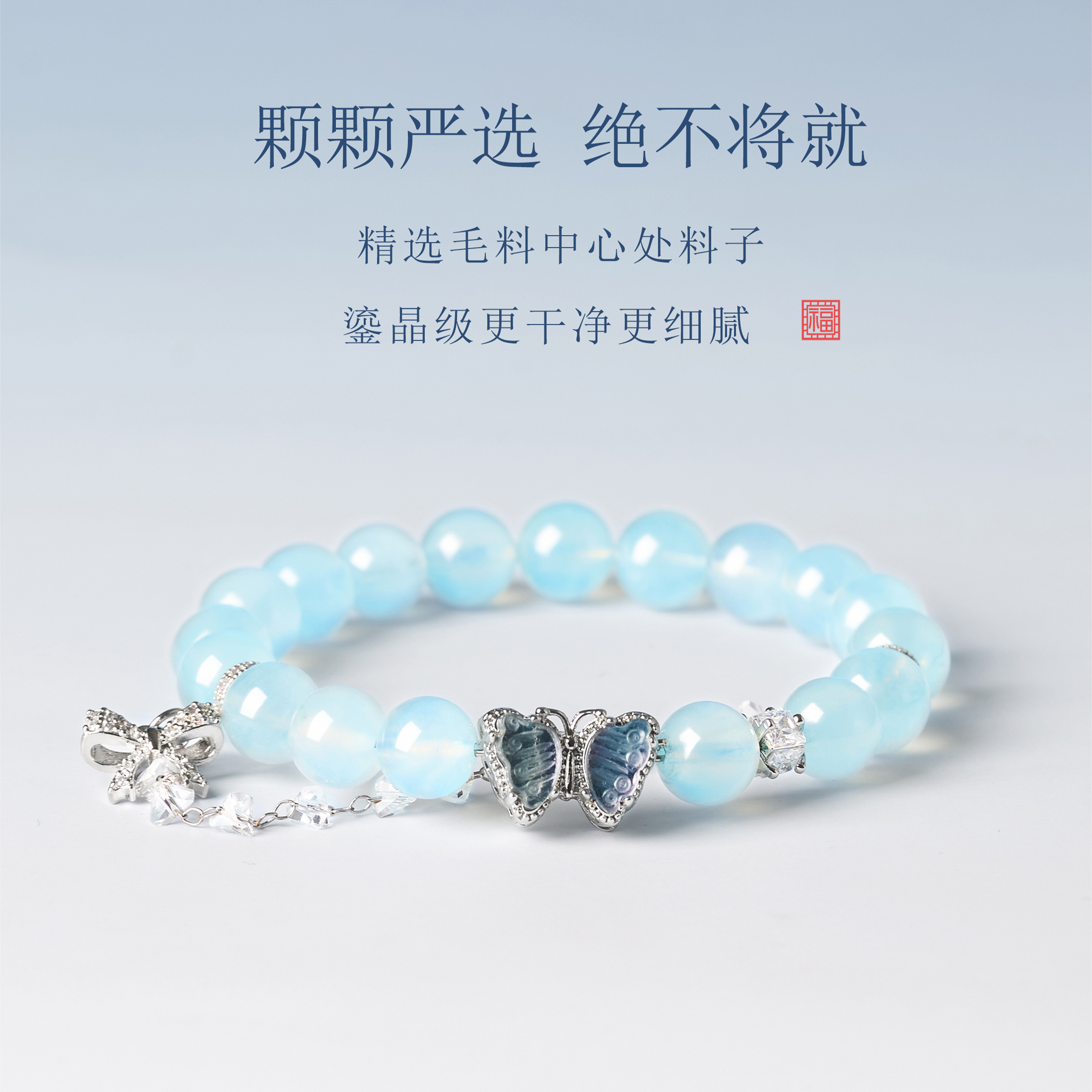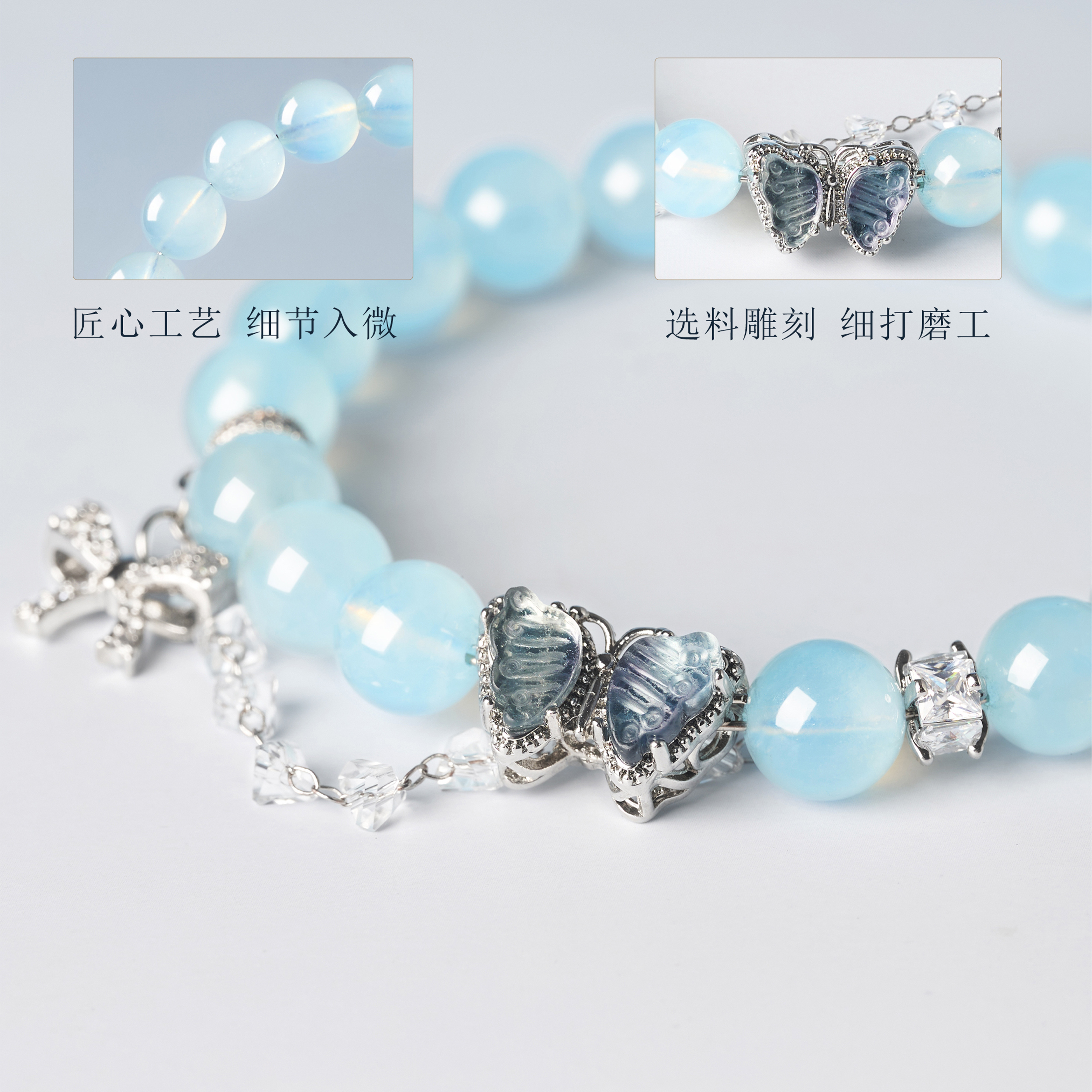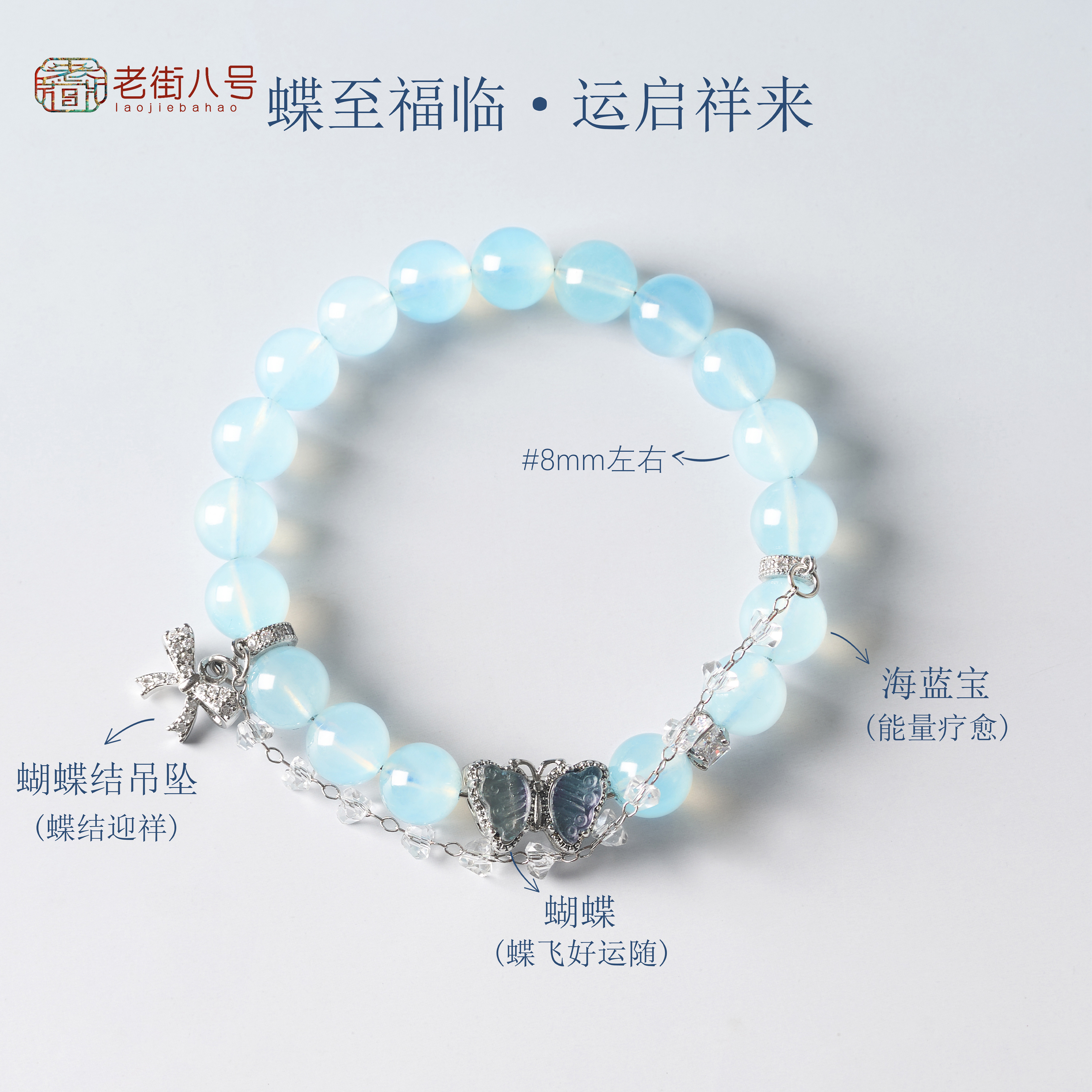 海蓝宝蓝晶手链蓝高雅设计感串珠百搭款礼物新中式蝴蝶