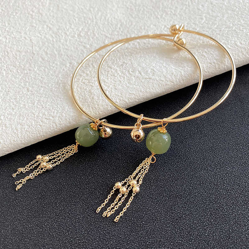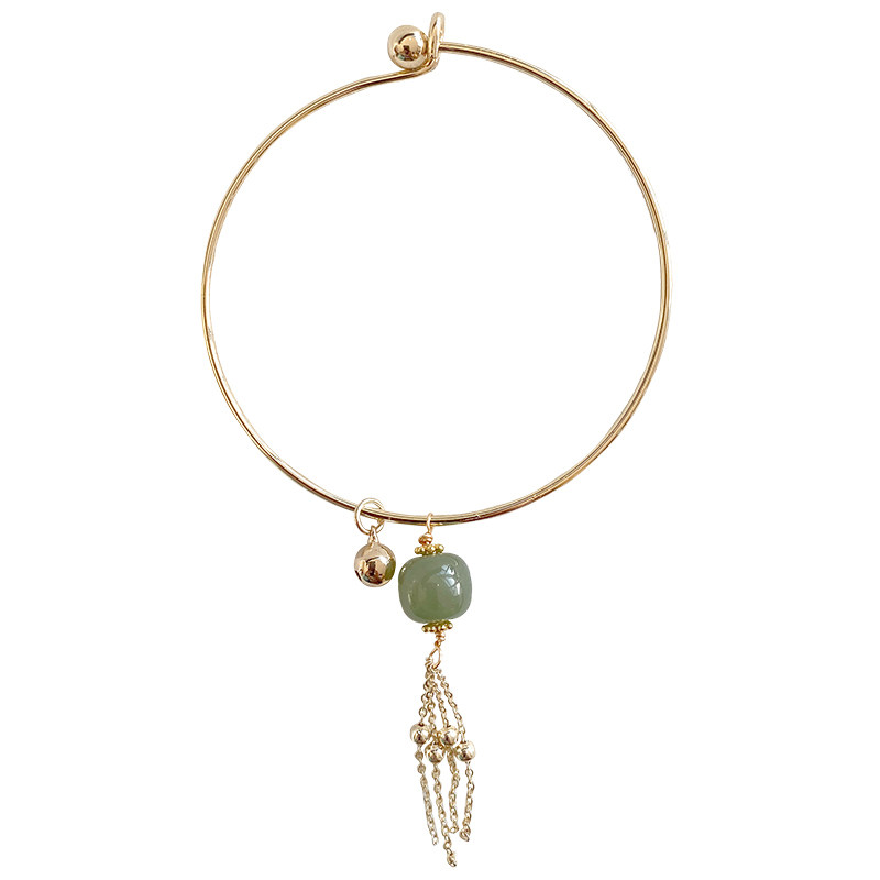 天然和田玉流苏手镯 金属14K包金富家千金即视感铃铛设计珠宝玉石