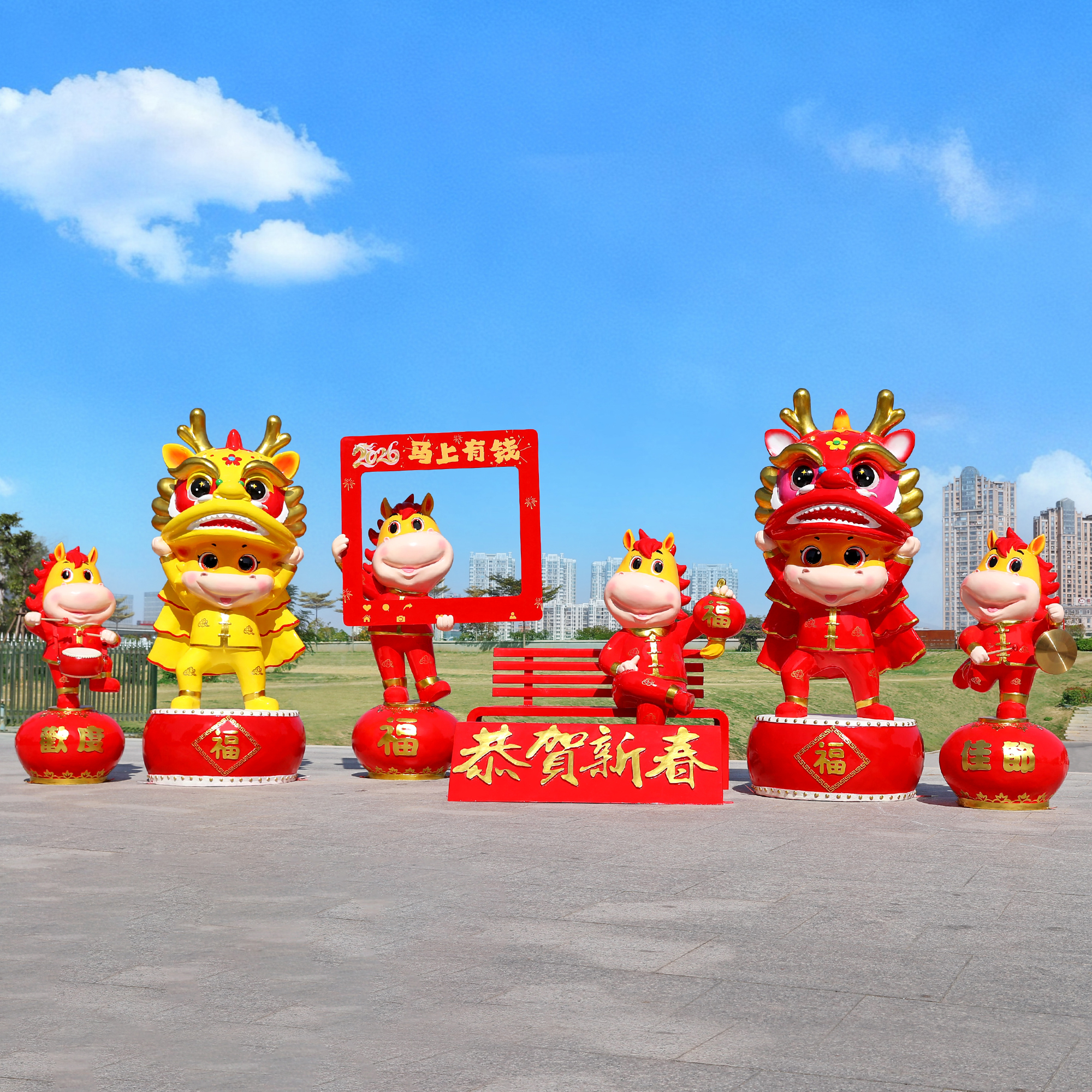 元旦新年马卡通IP网红打卡玻璃钢雕塑商场公园美陈喜庆摆件装饰品