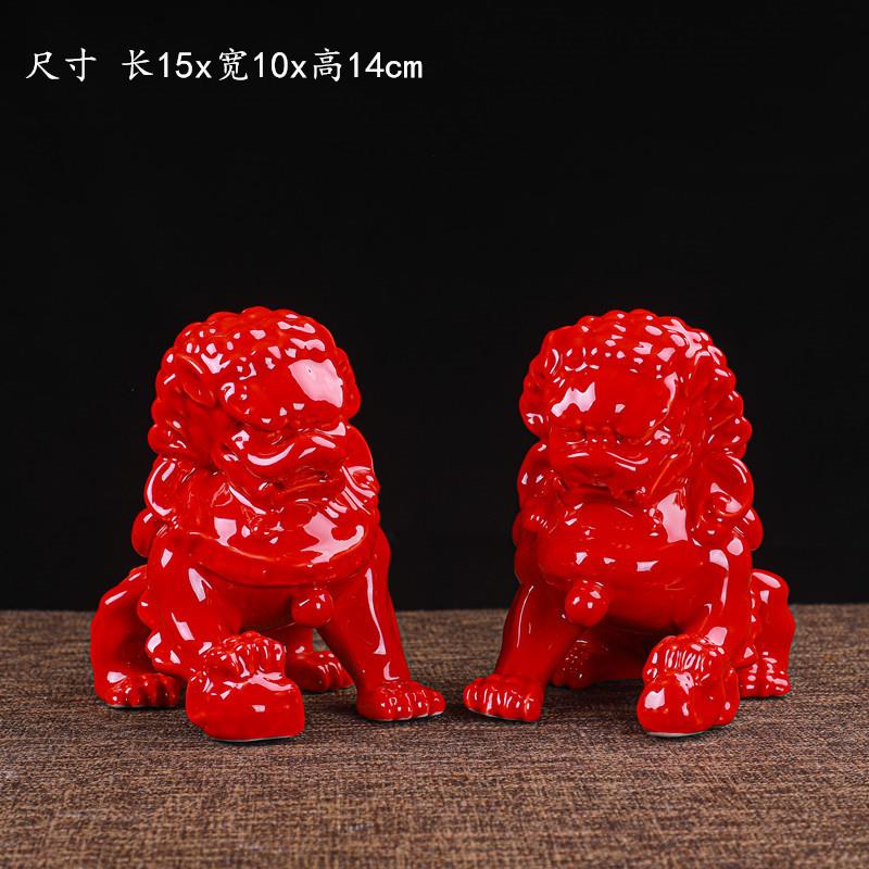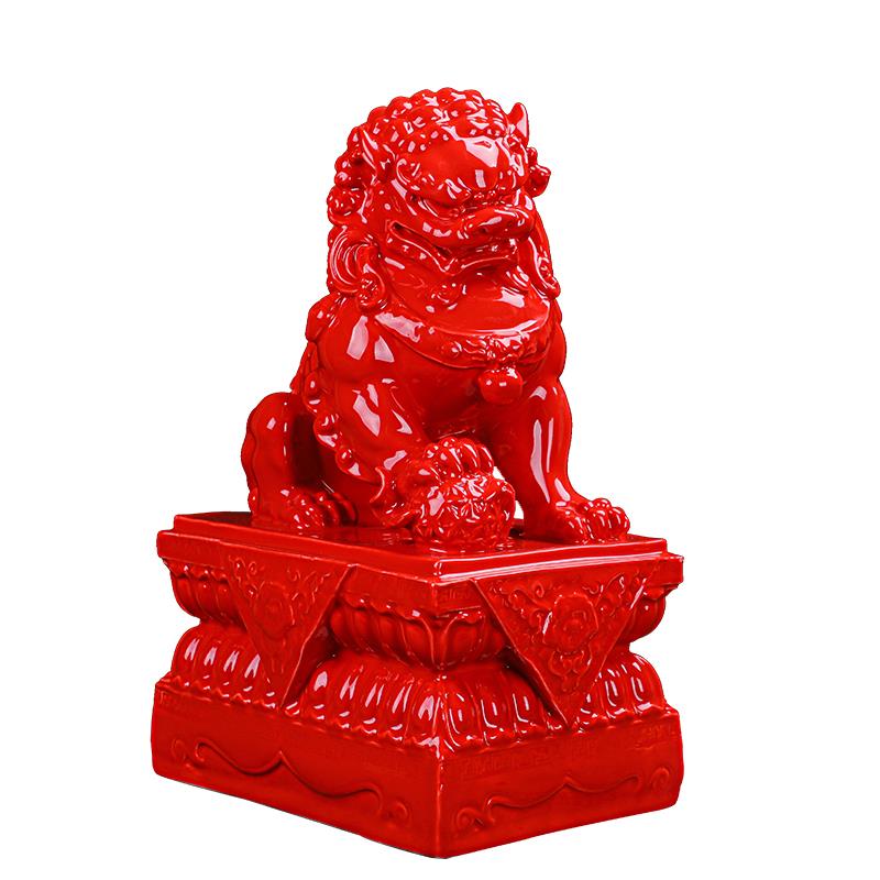 陶瓷红色大狮子摆件招财风水家居酒柜门口屋顶阳台店铺创意装饰设