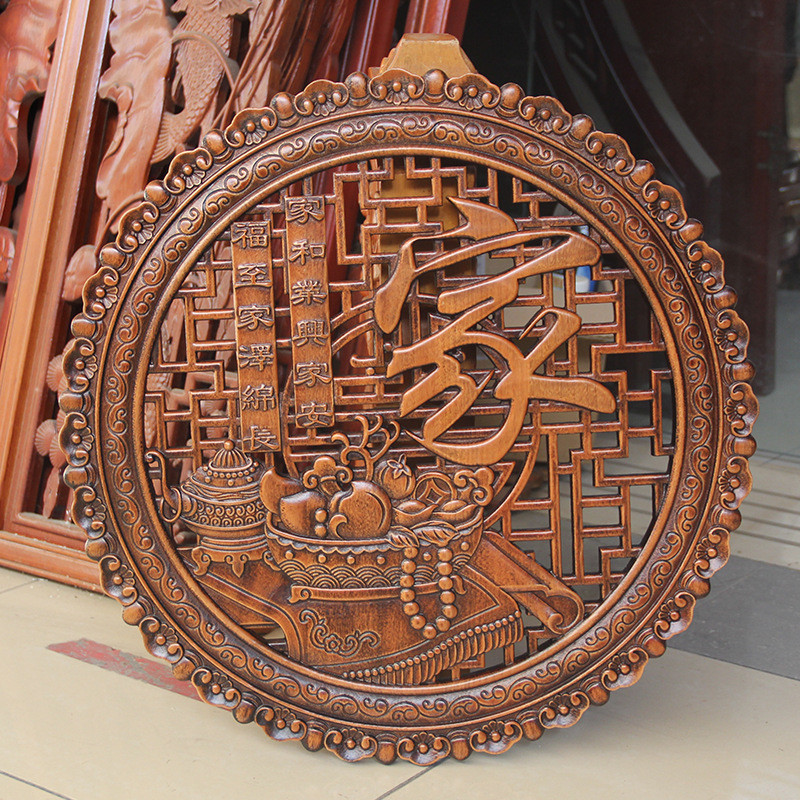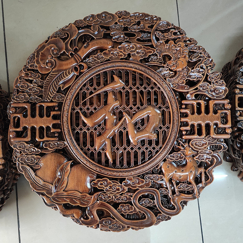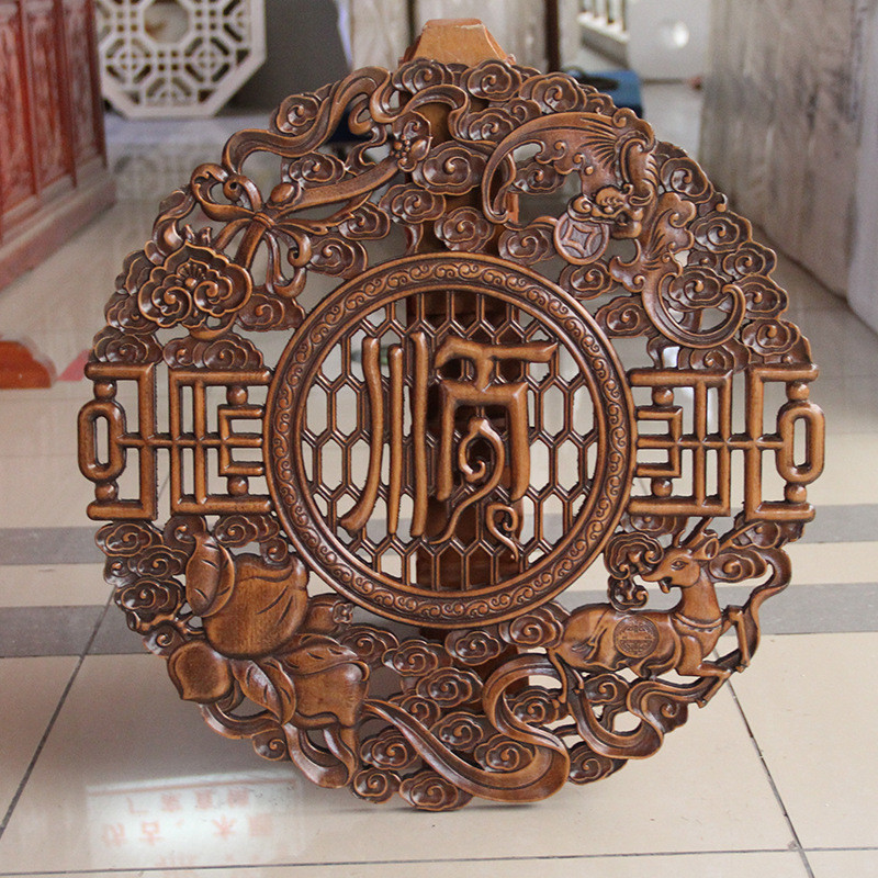 东阳木雕香樟木福字仿古圆形中式木雕墙装饰花格挂件壁挂生产厂家