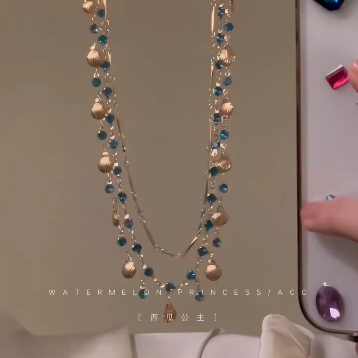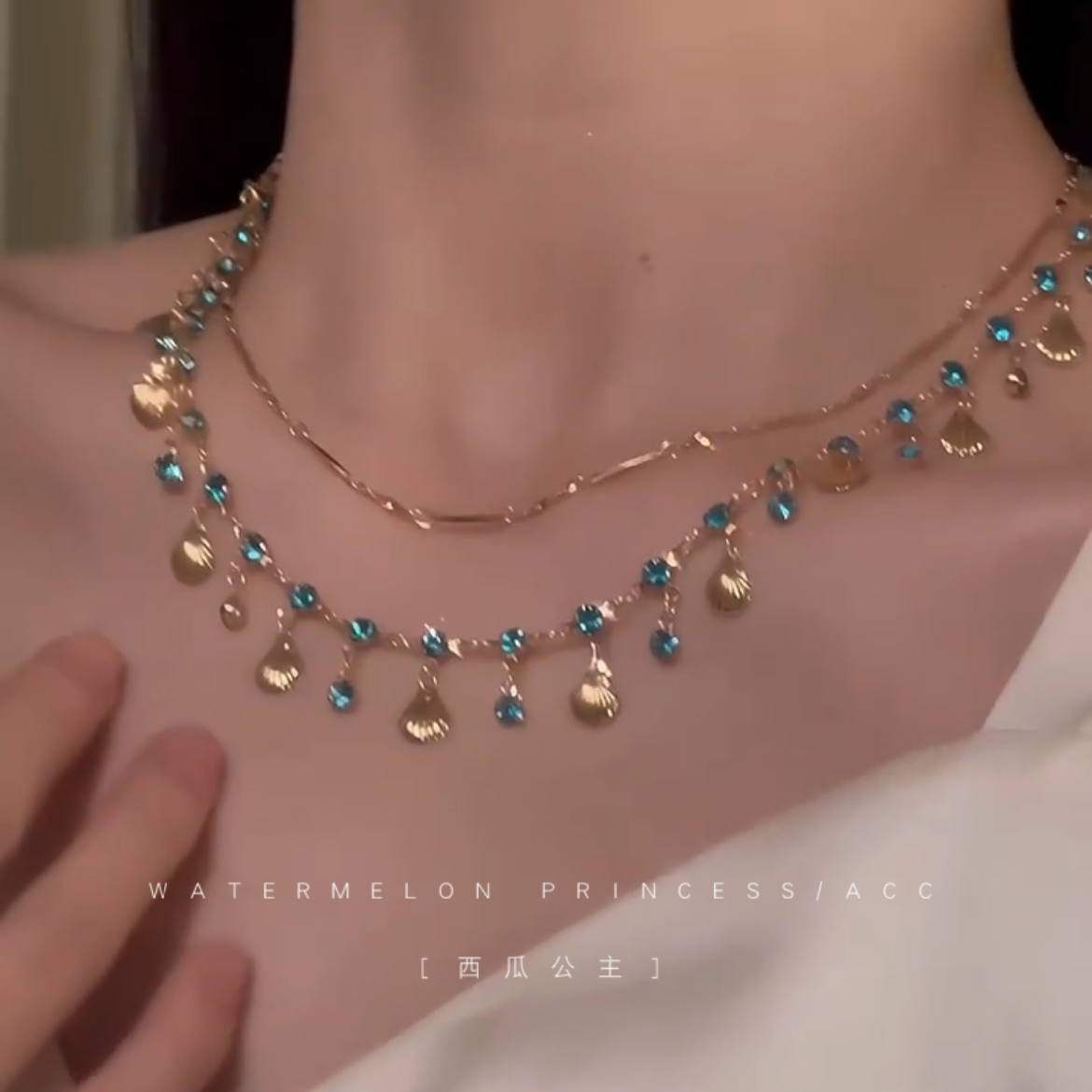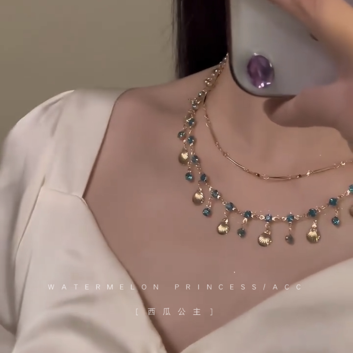 「蓝色之恋」蓝色贝壳项链女高级感海边度假双层叠戴锁骨链颈链潮