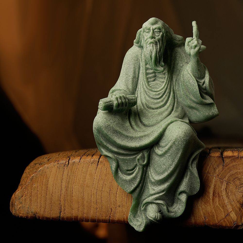 中式青砂石老子小摆件家用桌面装饰品鱼缸造景茶桌茶盘茶宠装饰