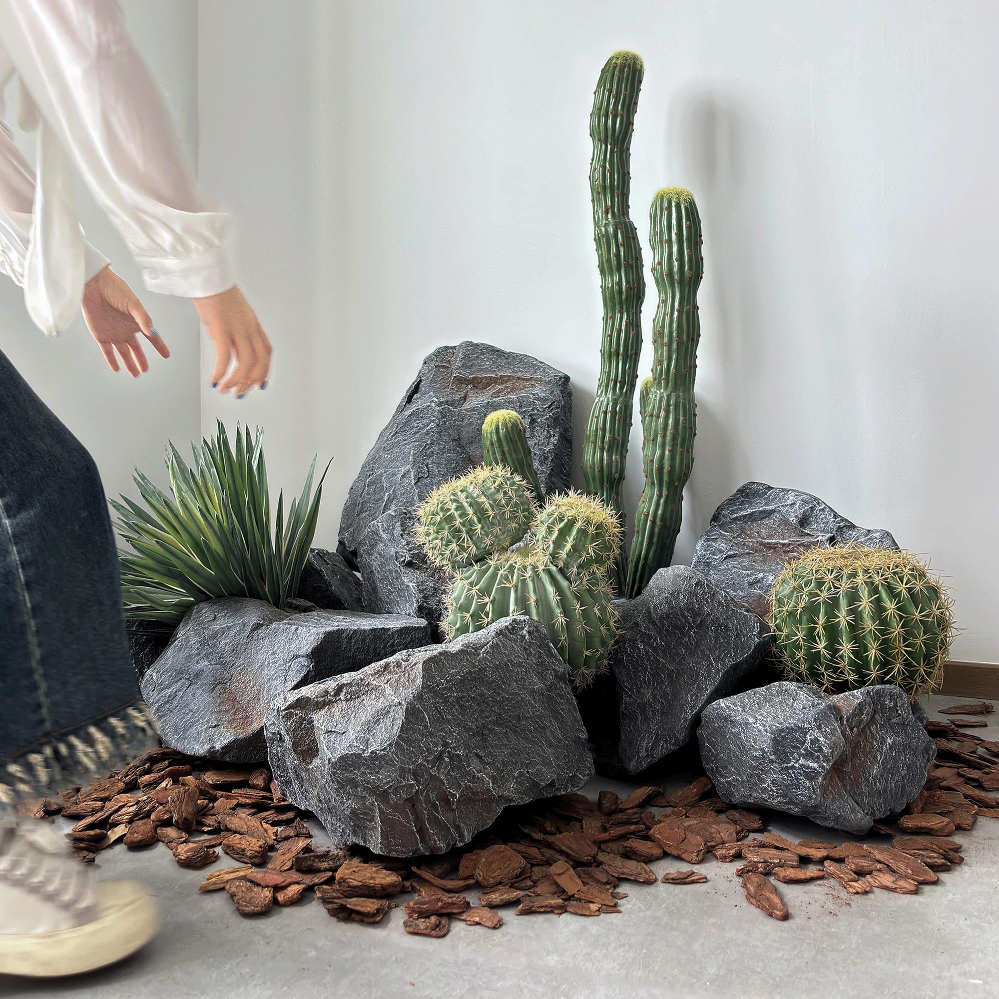 彷石绿色植物泡沫假石雕假山园林景观拍摄道具橱窗彷生景观石摆件