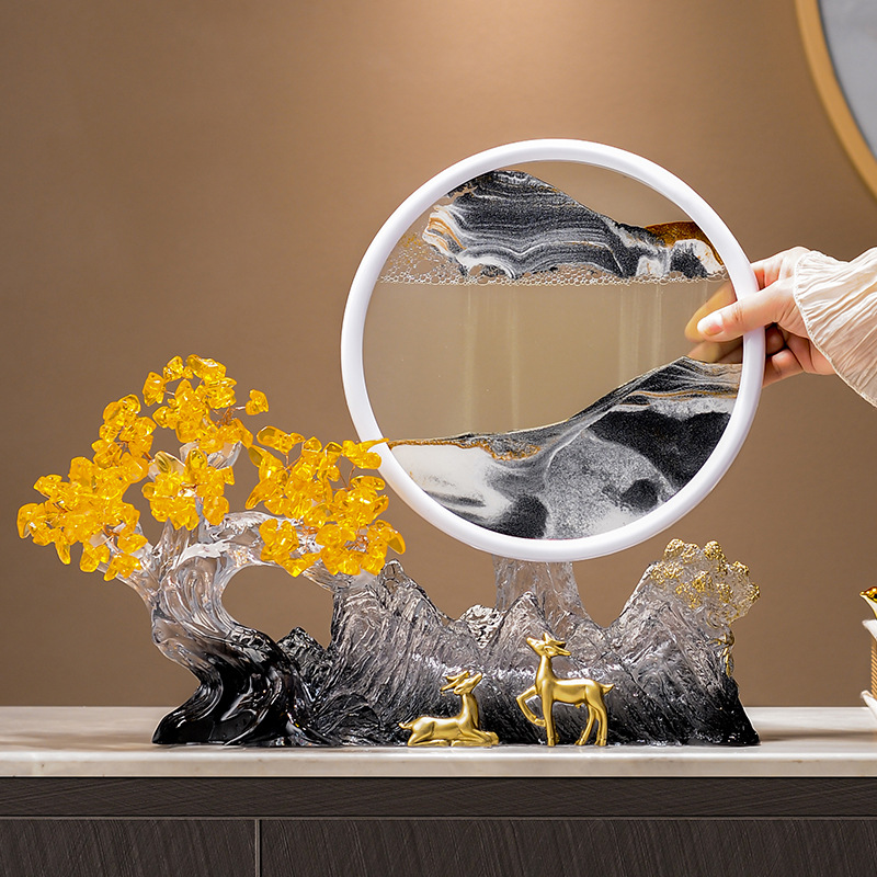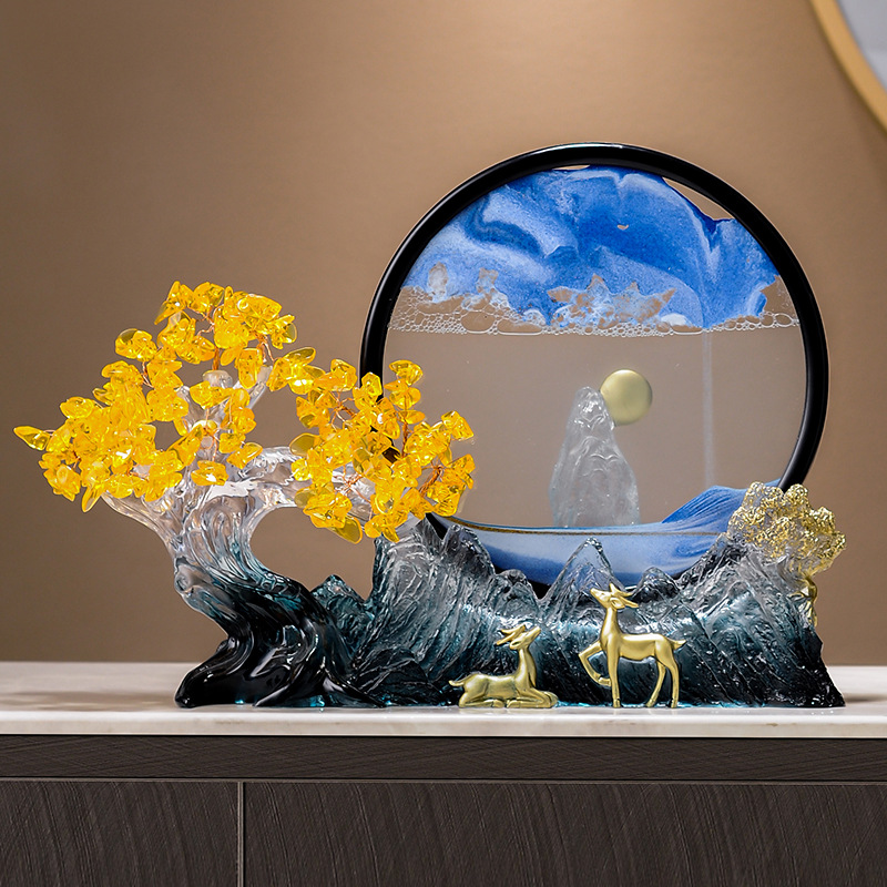 新中式发财树流沙画装饰摆件入门玄关轻奢高档办公室客厅电视柜
